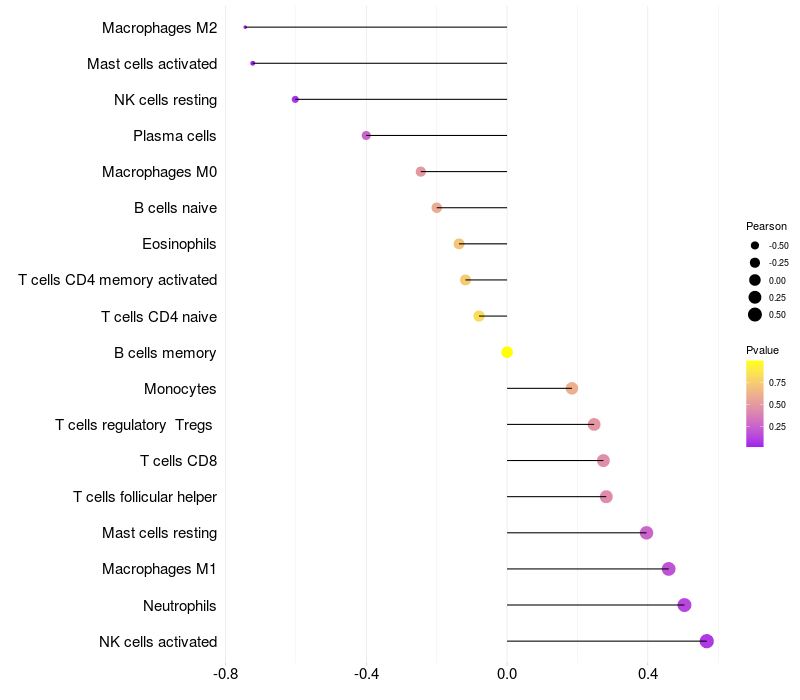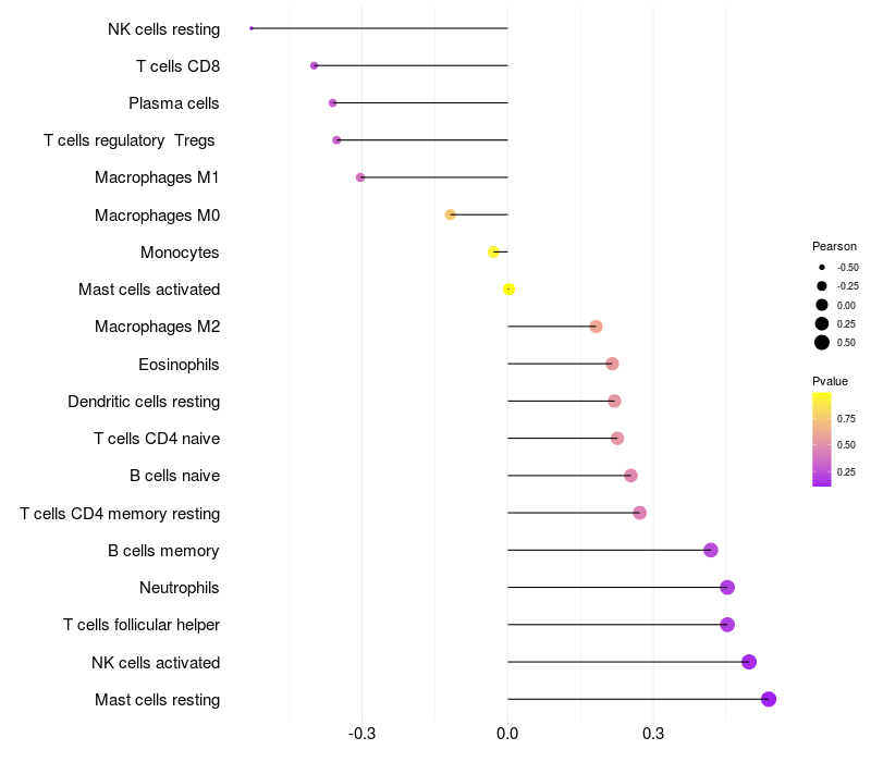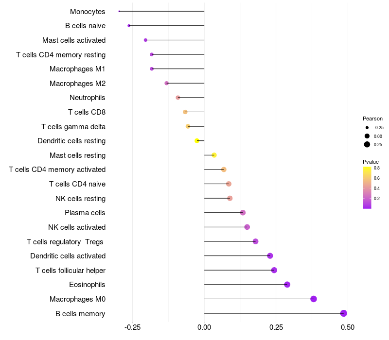 Lollipop of SAFB2 expression and immune infiltrating cell level correlation result in HBV+ Liver cirrhosis samples