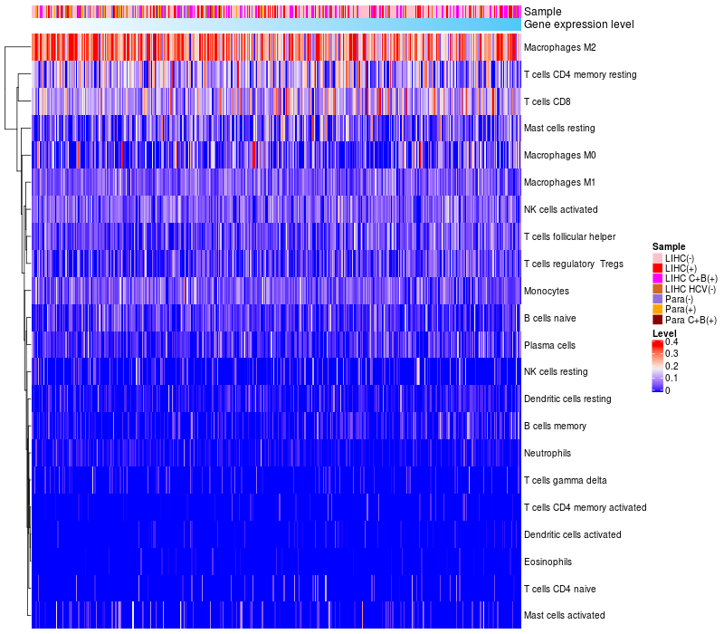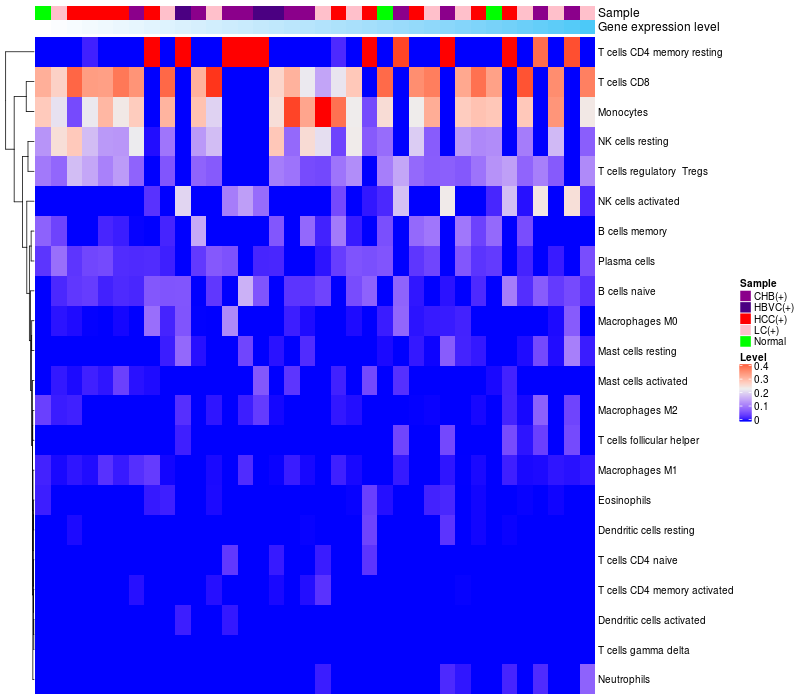 Relationship between gene expression and immune infiltrating cell level