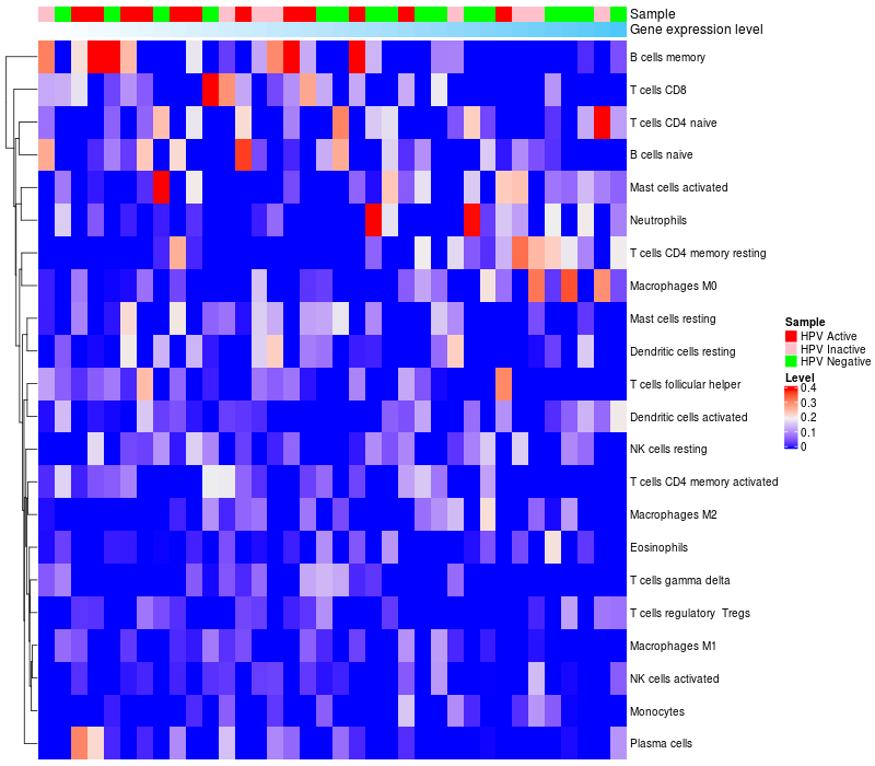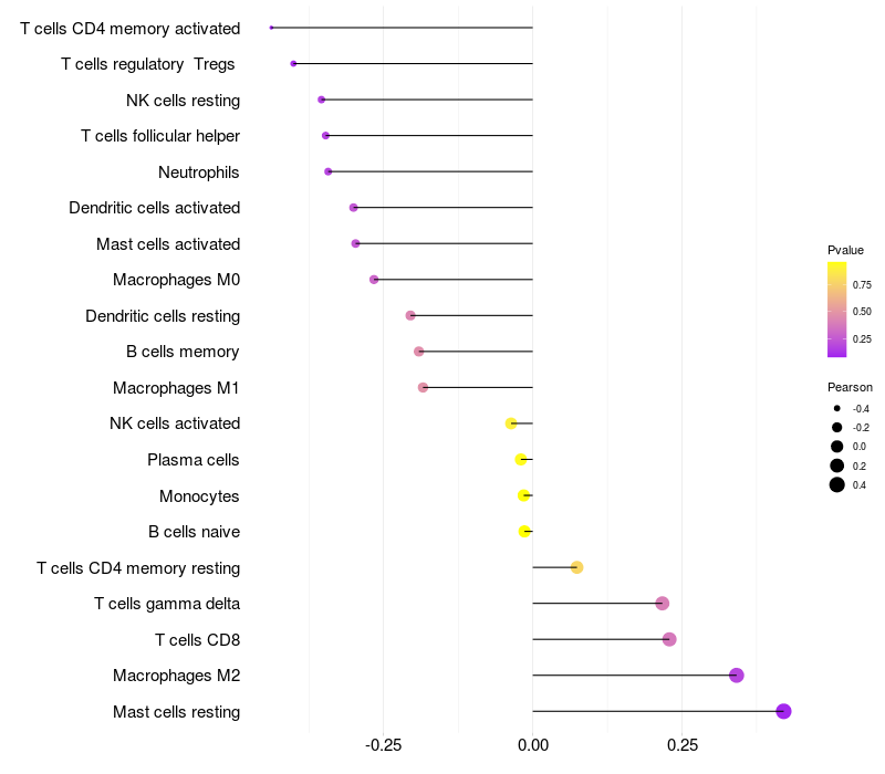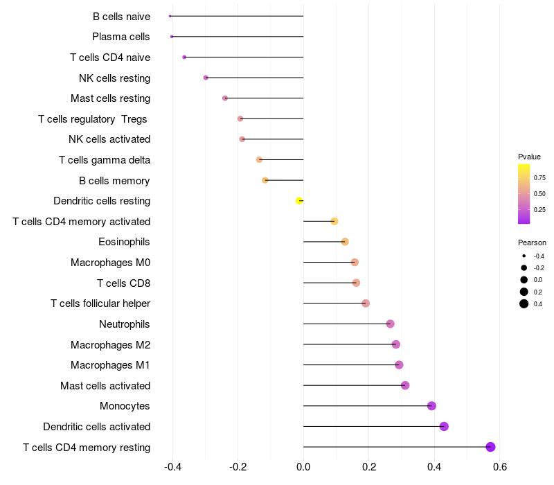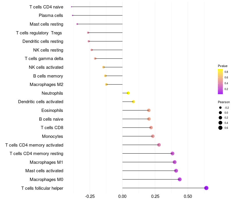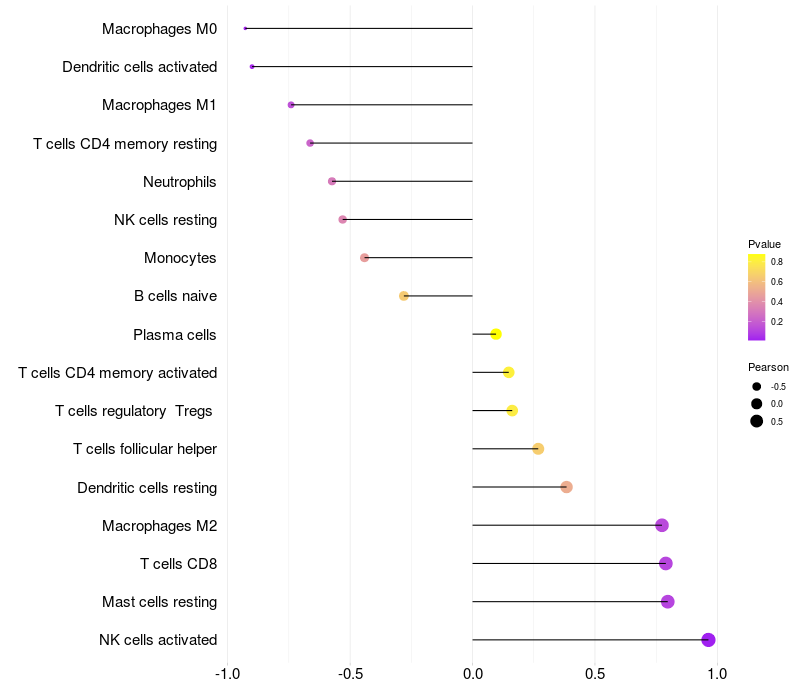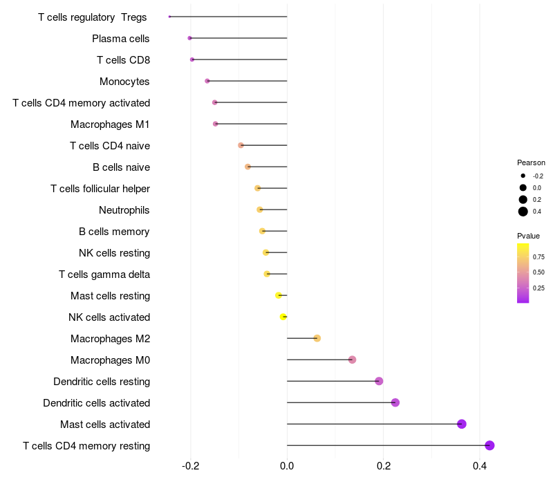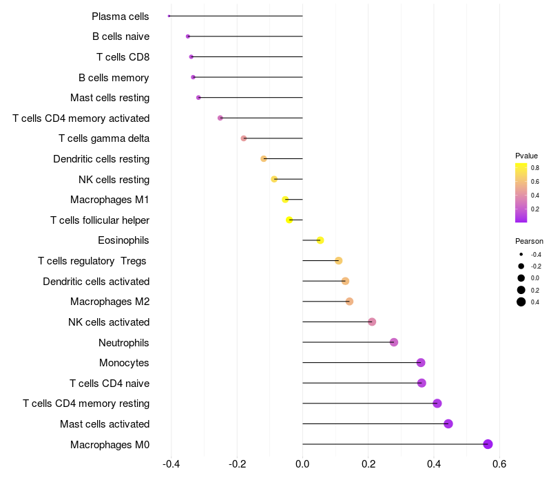 Lollipop of SALL1 expression and immune infiltrating cell level correlation result in HPV+ samples