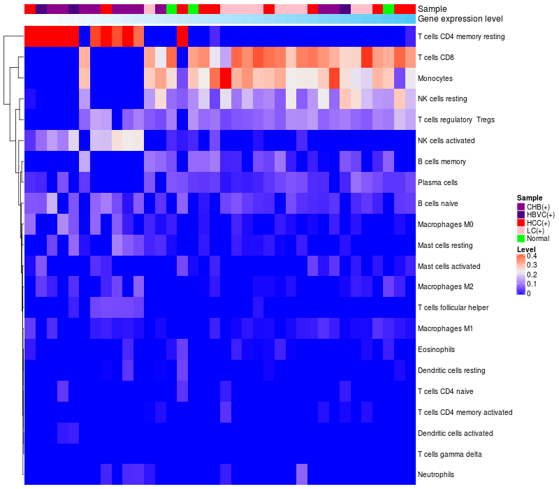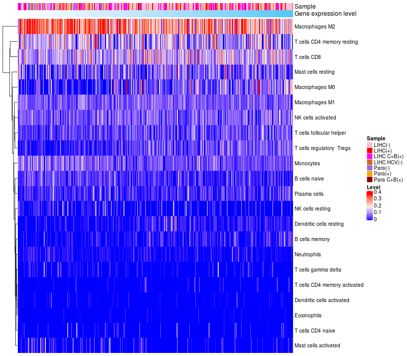 Liver hepatocellular carcinoma HCV (HBV+)(86), Liver hepatocellular carcinoma HCV (HBV-)(19), Liver hepatocellular carcinoma (HBV+)(209), Liver hepatocellular carcinoma (HBV+)(60), Paracancerous HCV (HBV+)(4), Paracancerous (HBV-)(28), Paracancerous (HBV+)(18) |