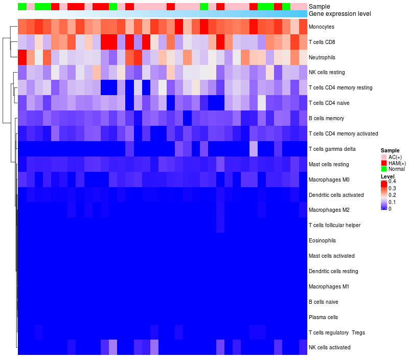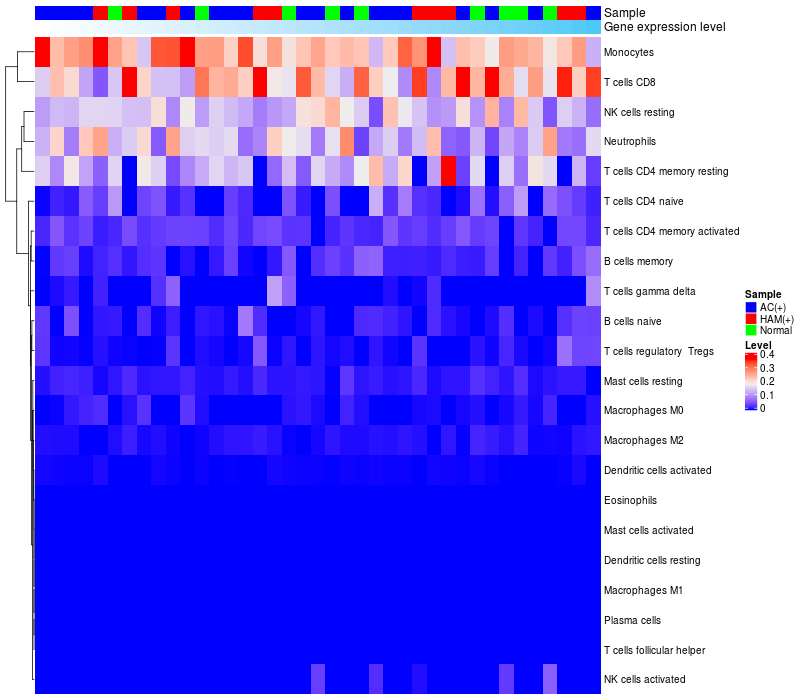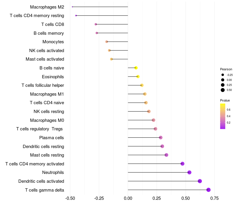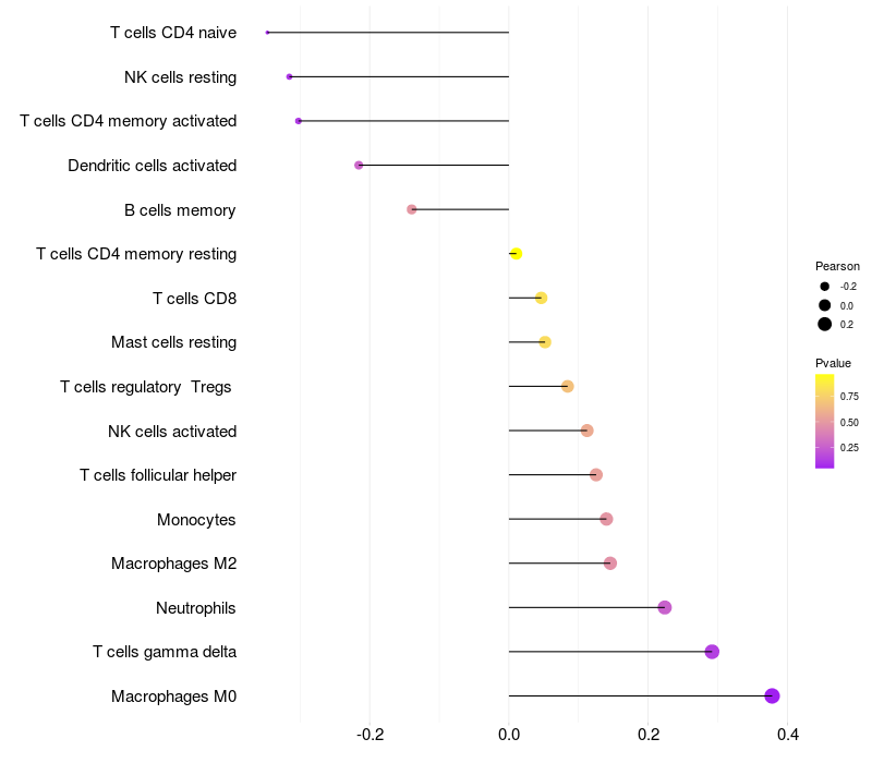 Lollipop of SAMD13 expression and immune infiltrating cell level correlation result in HTLV1+ samples