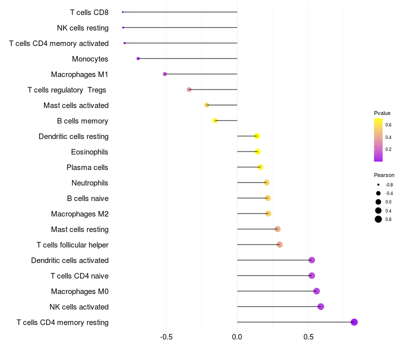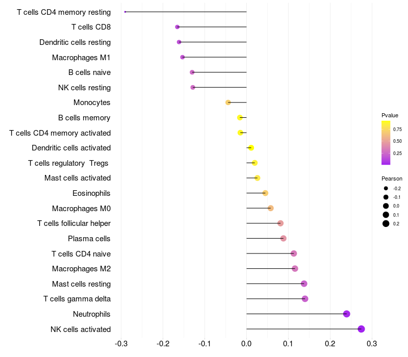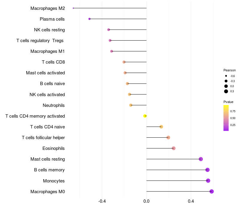 Lollipop of SAR1A expression and immune infiltrating cell level correlation result in HBV+ Liver cirrhosis samples