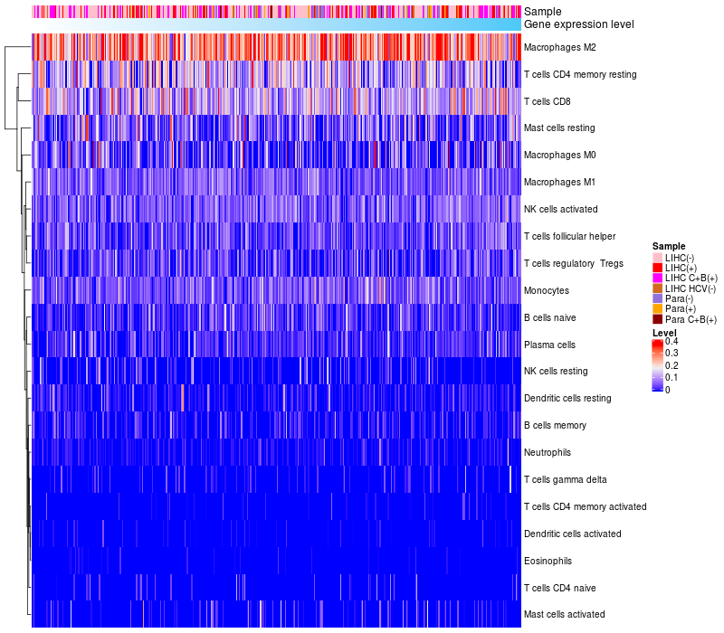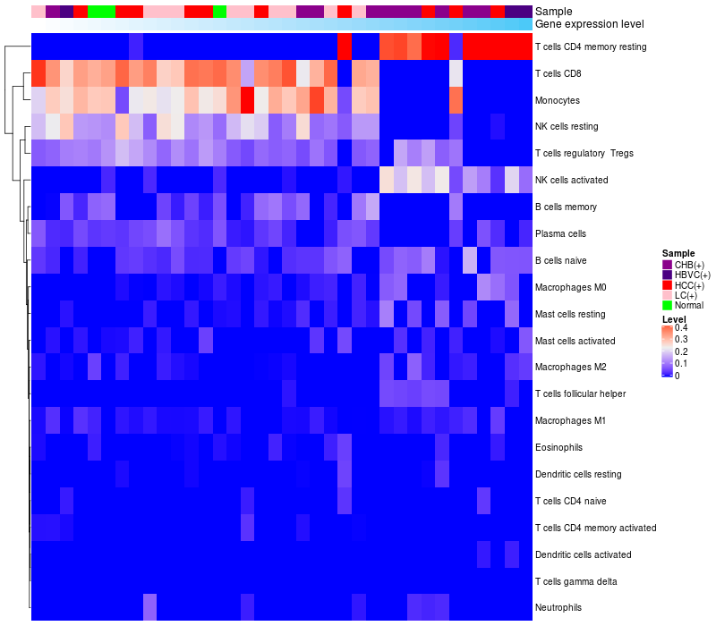 Relationship between gene expression and immune infiltrating cell level