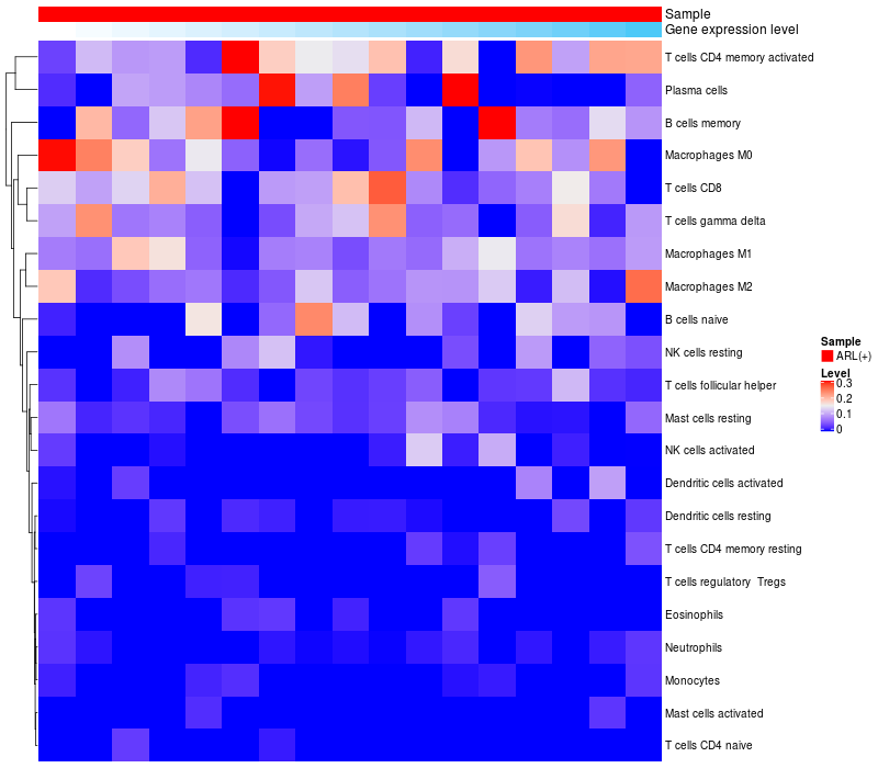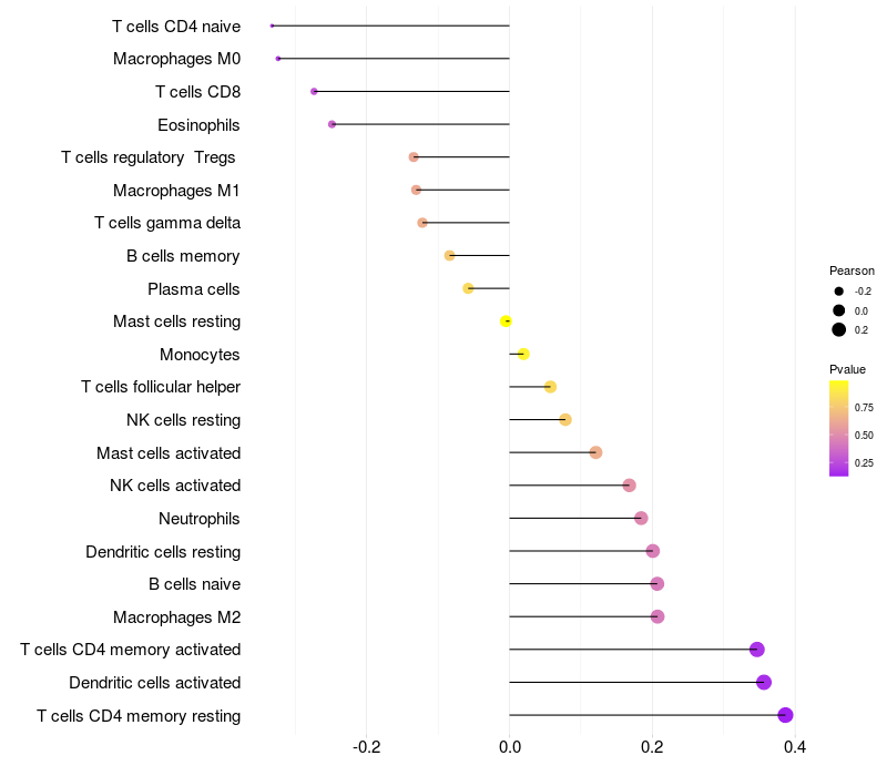 Relationship between gene expression and immune infiltrating cell level