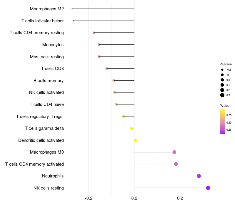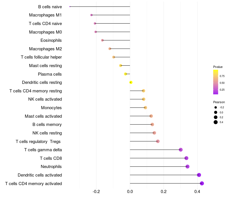 Lollipop of SCARA5 expression and immune infiltrating cell level correlation result in HTLV1+ samples