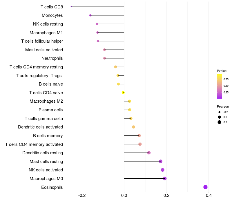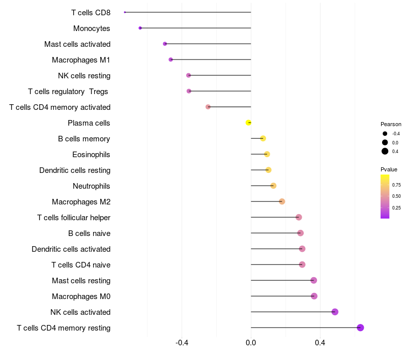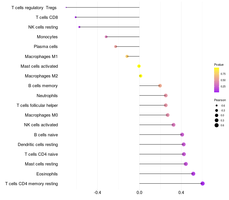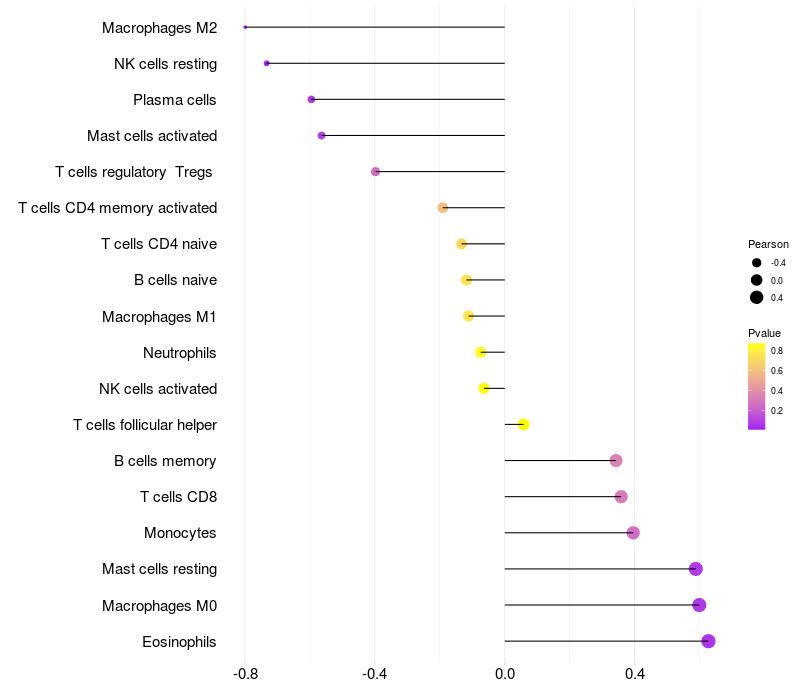 Lollipop of SCFD2 expression and immune infiltrating cell level correlation result in HBV+ Liver cirrhosis samples
