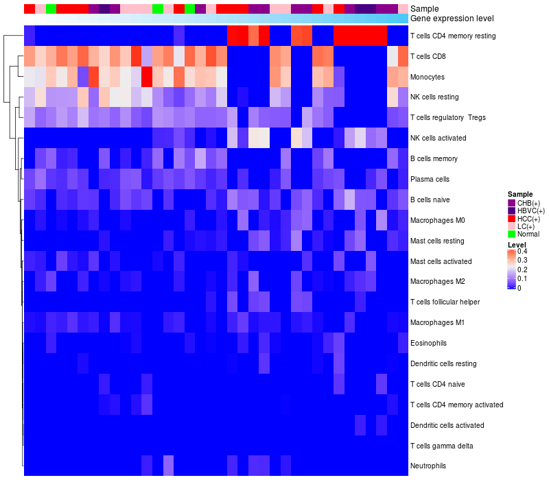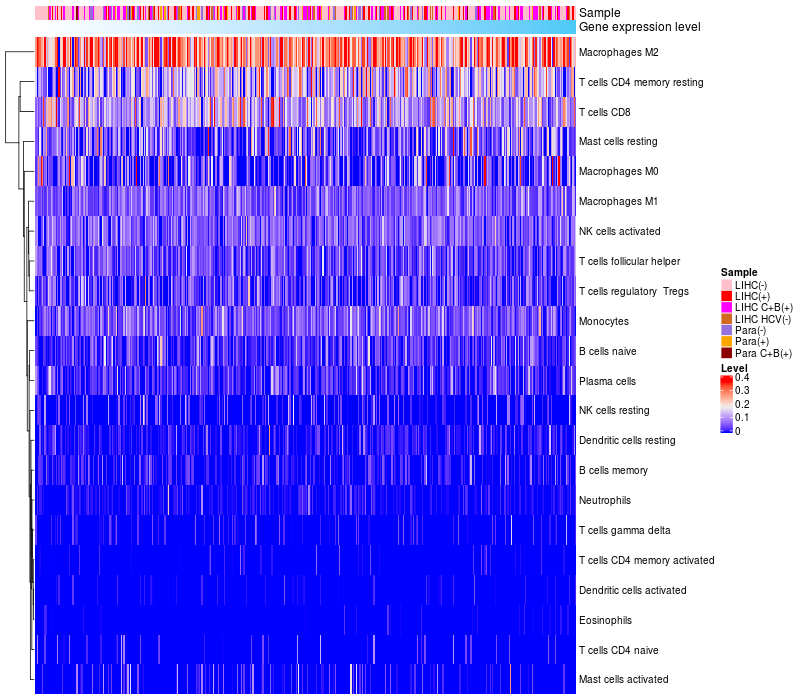 Liver hepatocellular carcinoma HCV (HBV+)(86), Liver hepatocellular carcinoma HCV (HBV-)(19), Liver hepatocellular carcinoma (HBV+)(209), Liver hepatocellular carcinoma (HBV+)(60), Paracancerous HCV (HBV+)(4), Paracancerous (HBV-)(28), Paracancerous (HBV+)(18) |