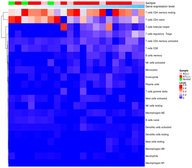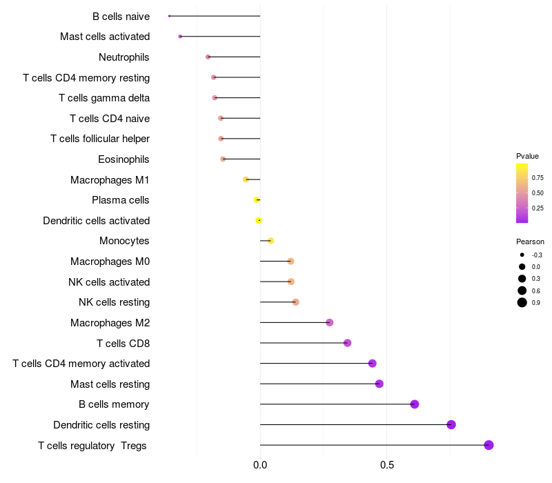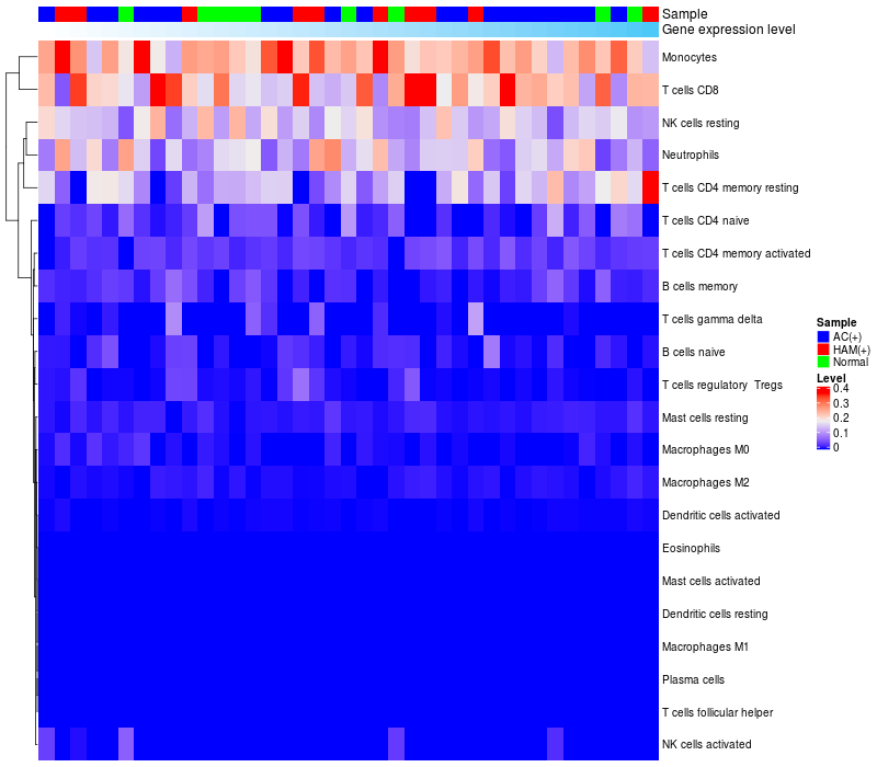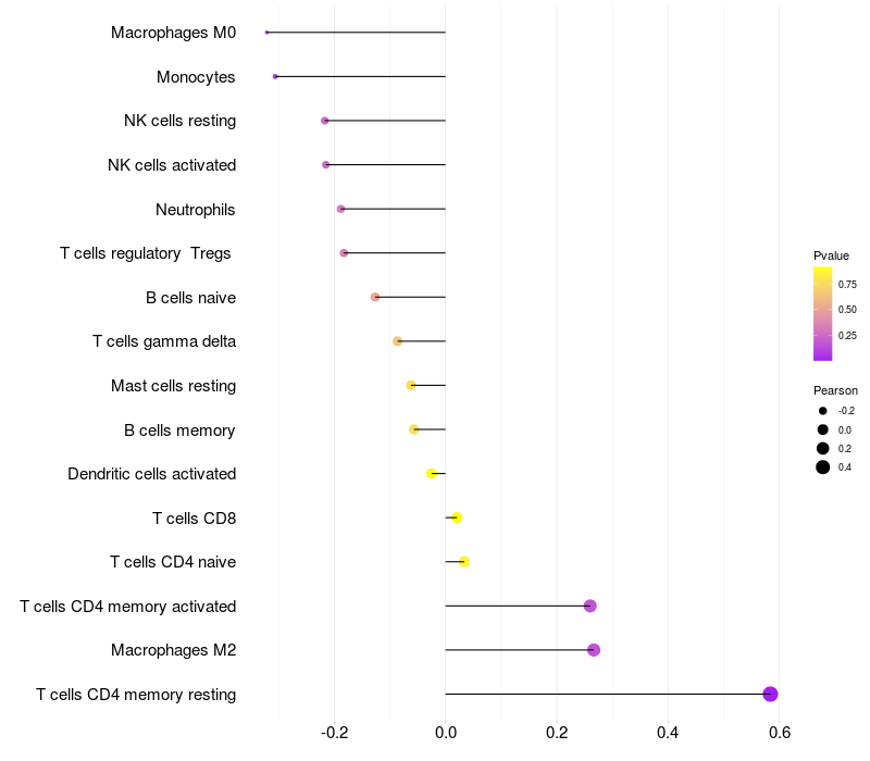 Relationship between gene expression and immune infiltrating cell level
