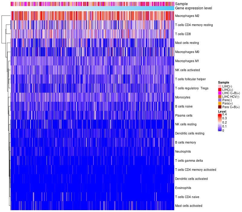 Relationship between gene expression and immune infiltrating cell level
