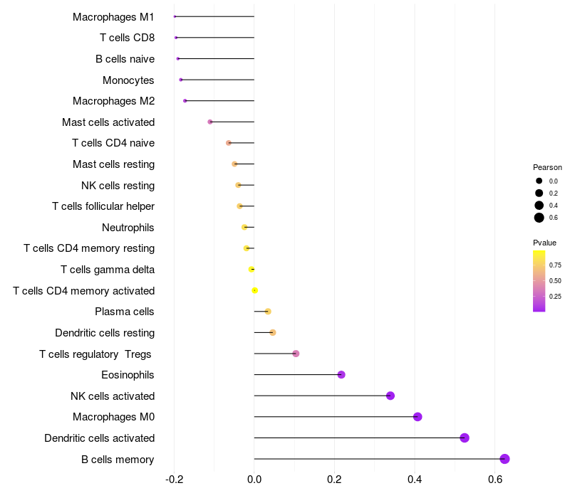 Lollipop of SCN5A expression and immune infiltrating cell level correlation result in HBV+ samples