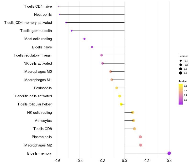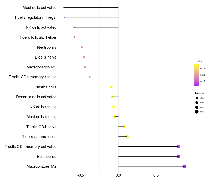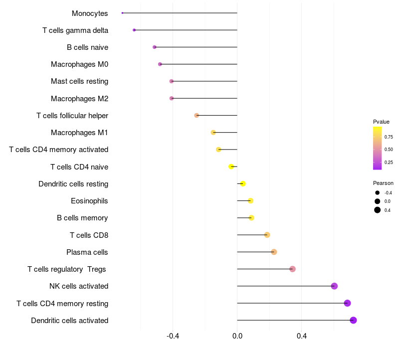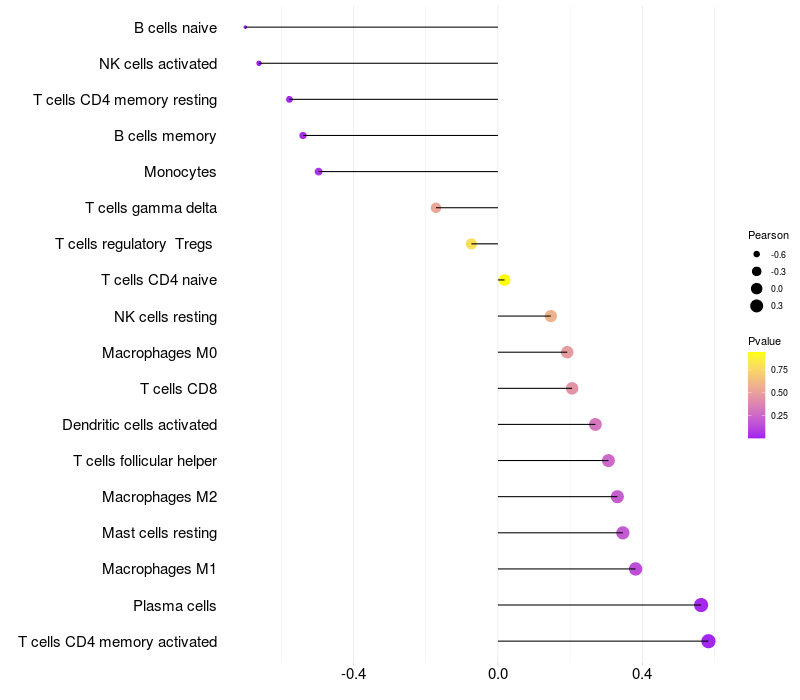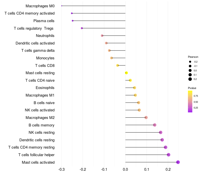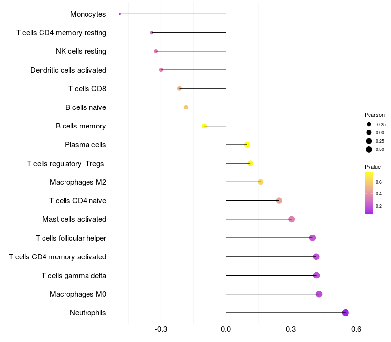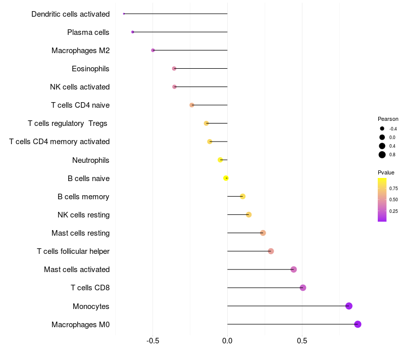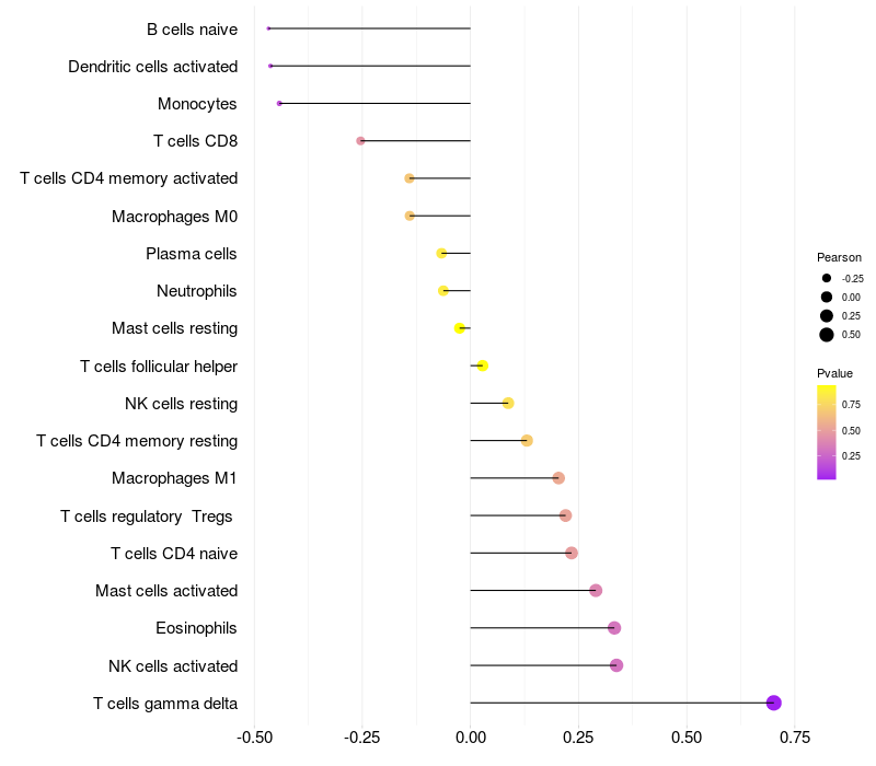 Lollipop of SCN7A expression and immune infiltrating cell level correlation result in EBV+ samples