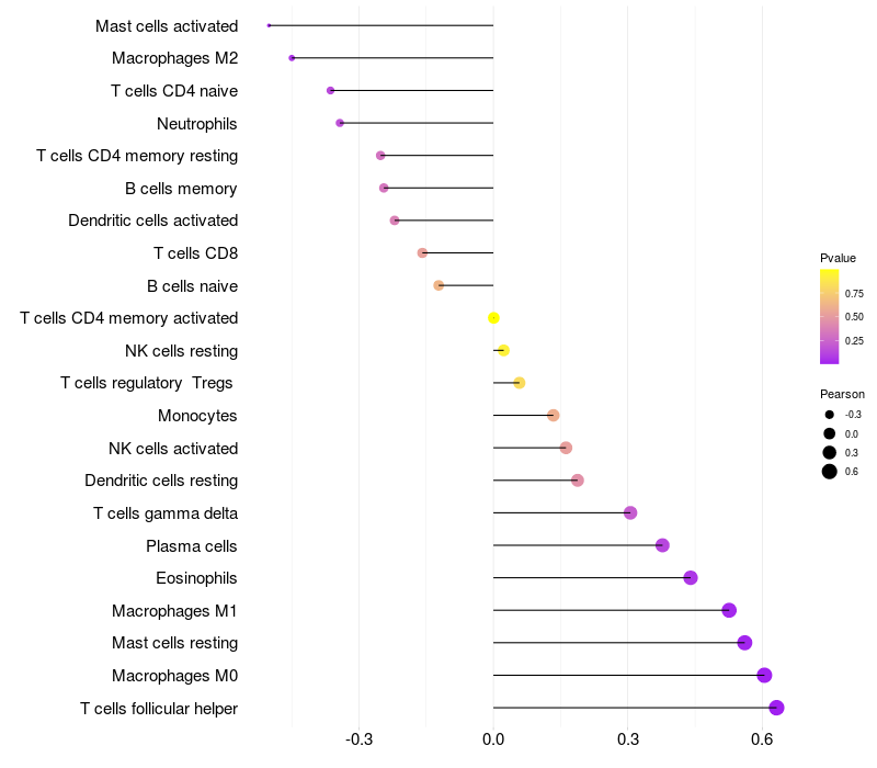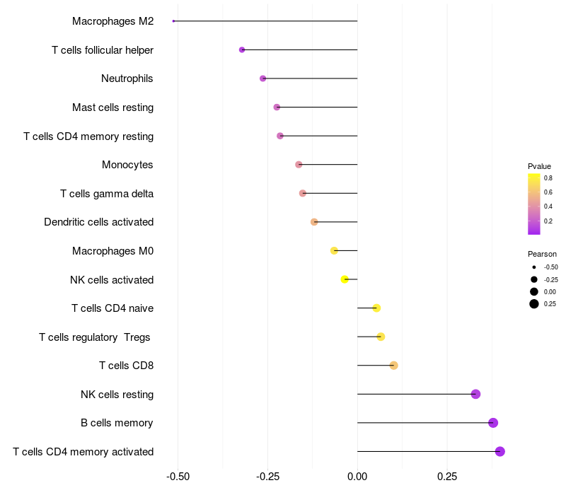 Lollipop of SCN8A expression and immune infiltrating cell level correlation result in HTLV1+ samples