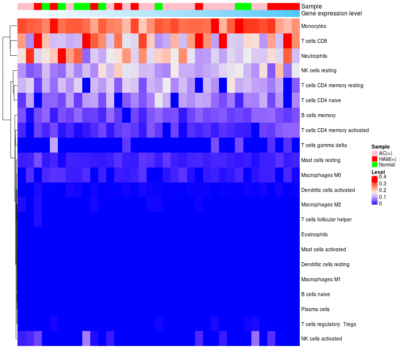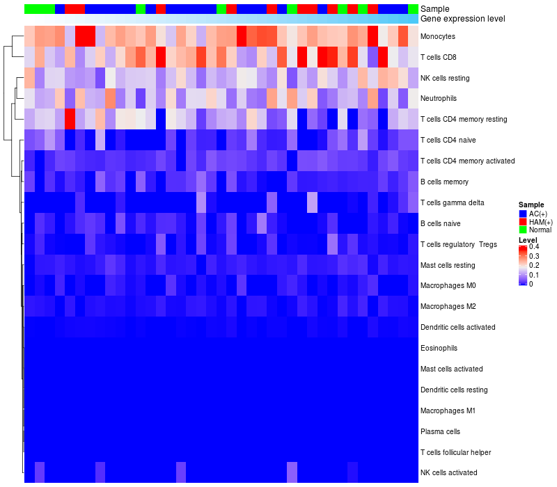 Relationship between gene expression and immune infiltrating cell level