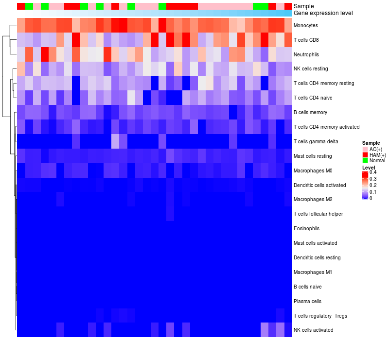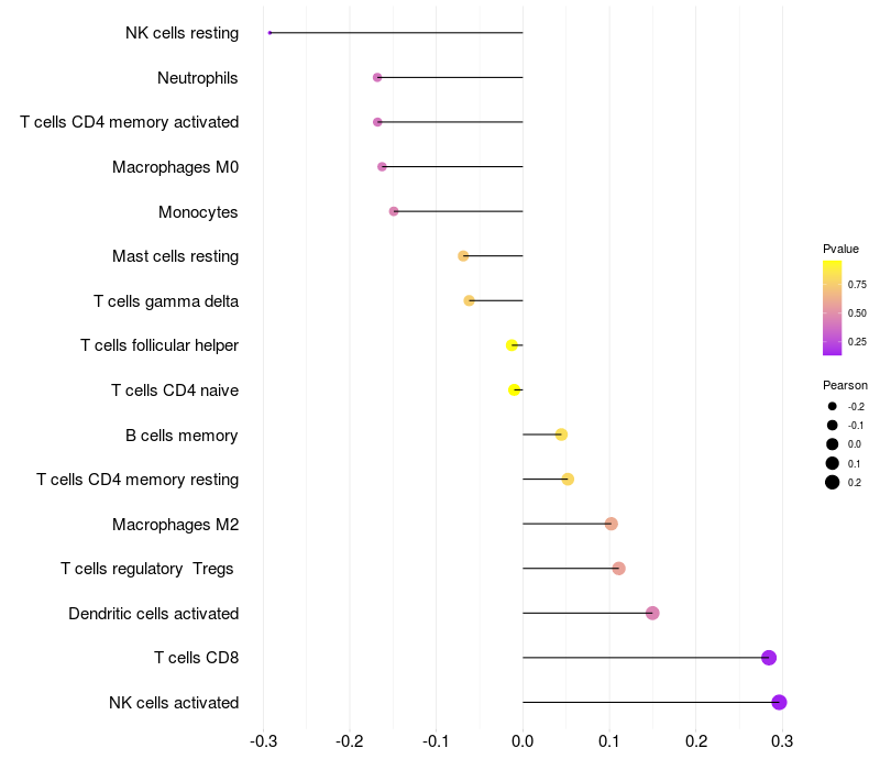 Lollipop of SCOC expression and immune infiltrating cell level correlation result in HTLV1+ samples