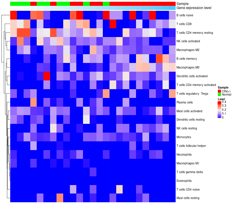Normal (10), Cervical intraepithelial neoplasia (HPV+)(15) |