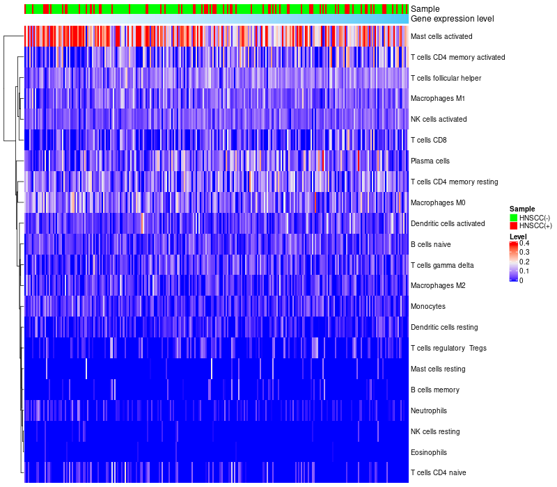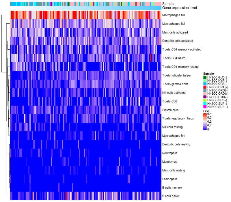 Head and Neck squamous cell carcinoma(HPV-)(483),Head and Neck squamous cell carcinoma(HPV+)(39),Paracancerous(HPV-)(44) |
