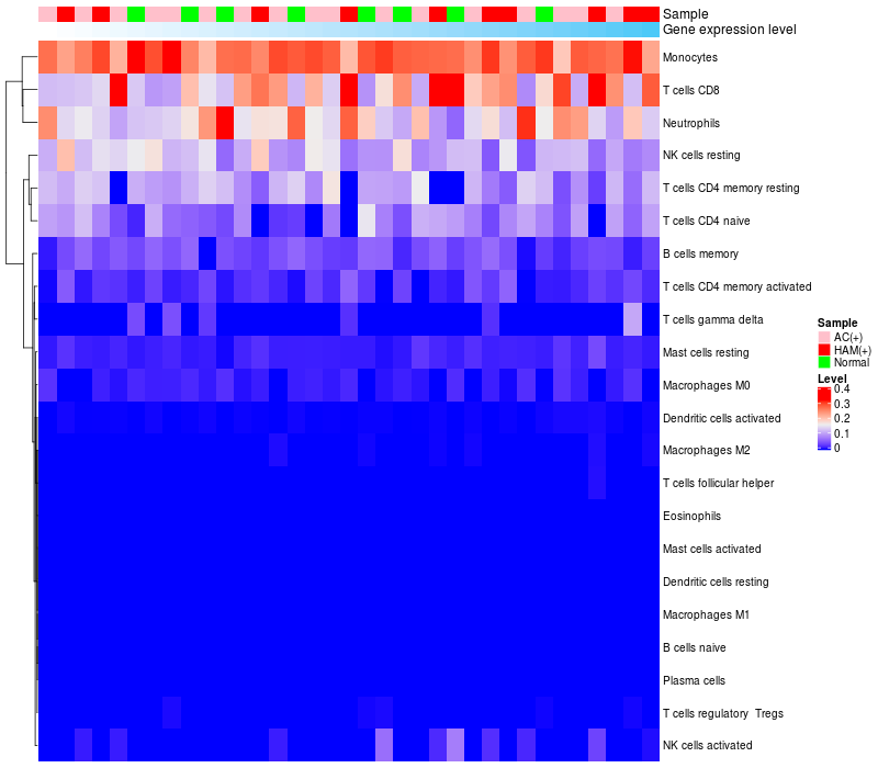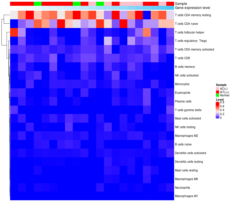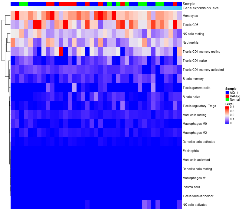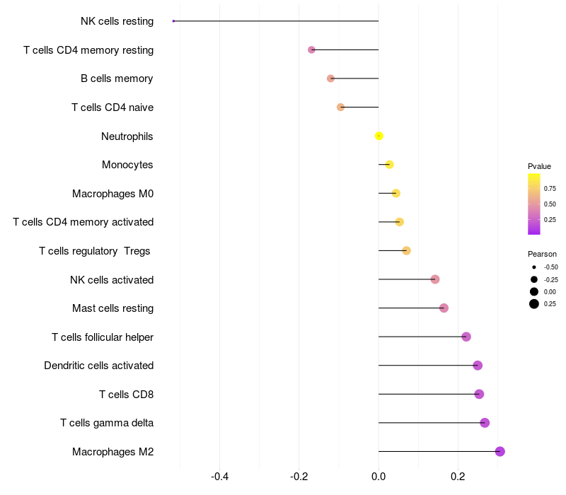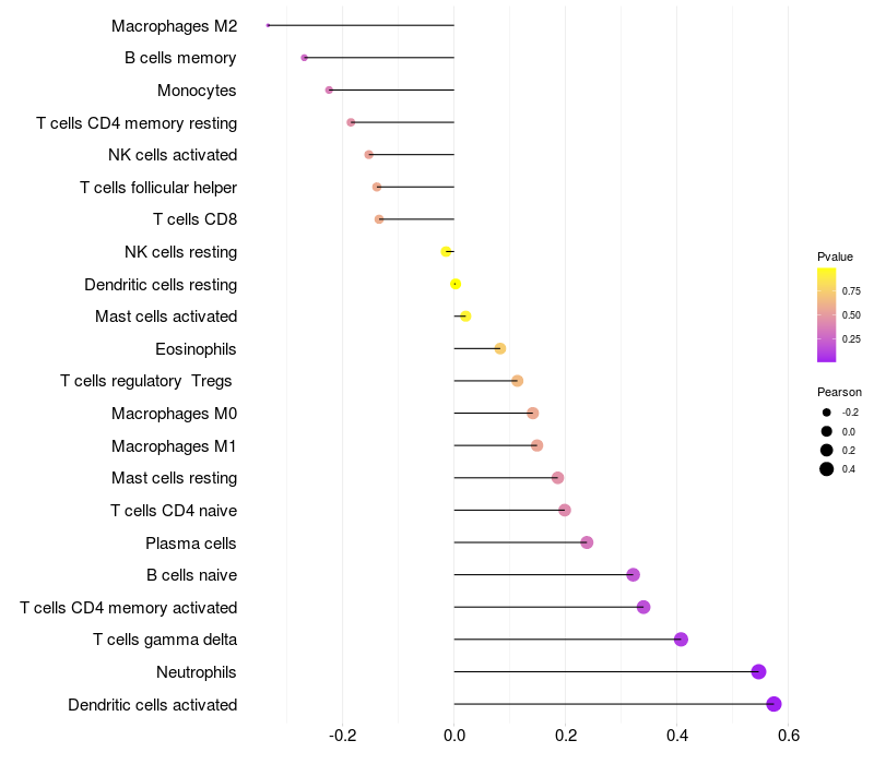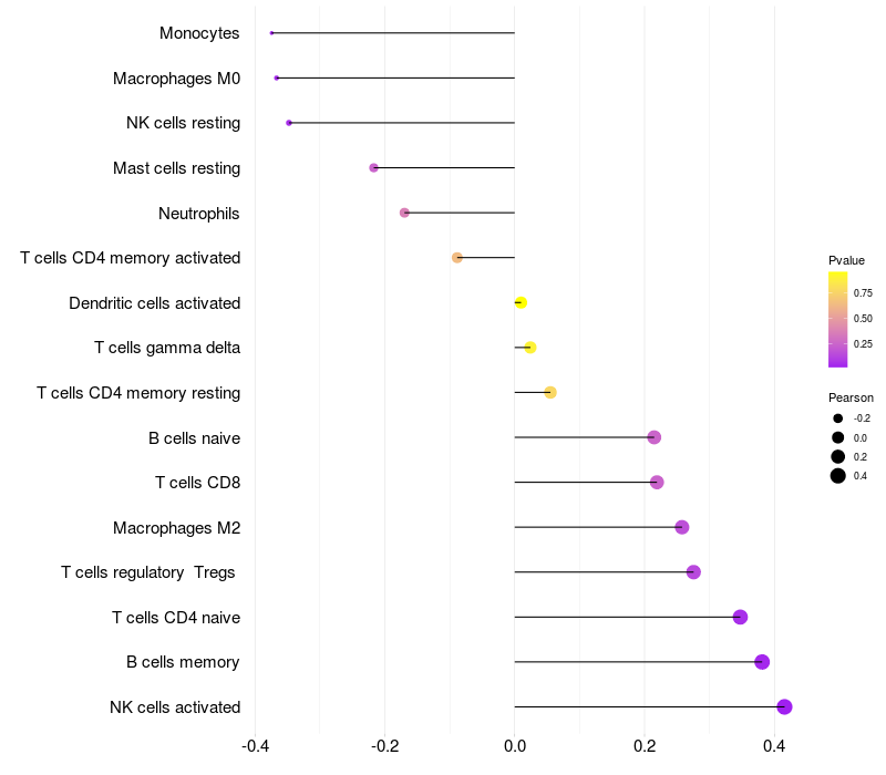 Lollipop of SCYL3 expression and immune infiltrating cell level correlation result in HTLV1+ samples