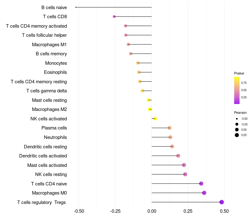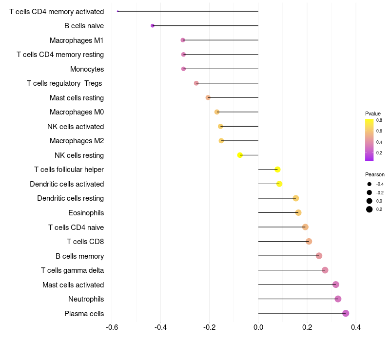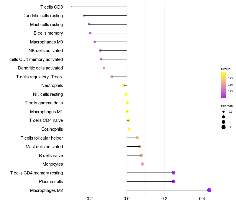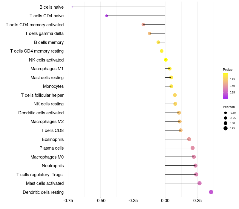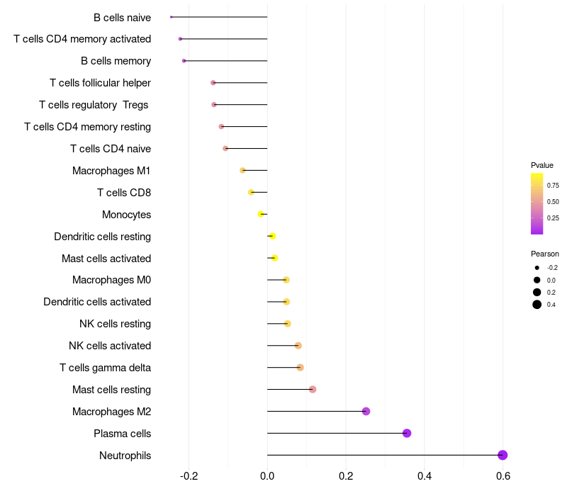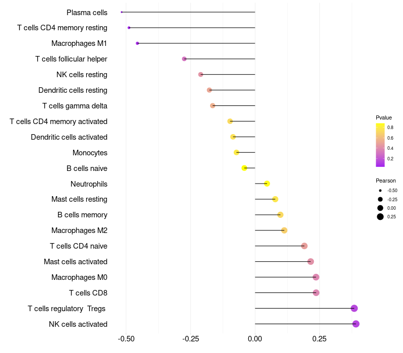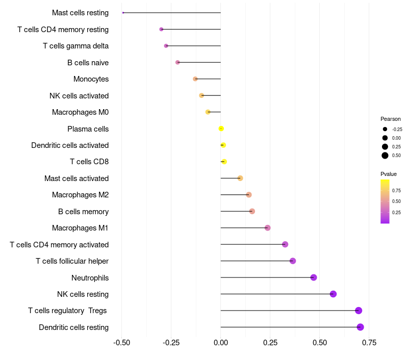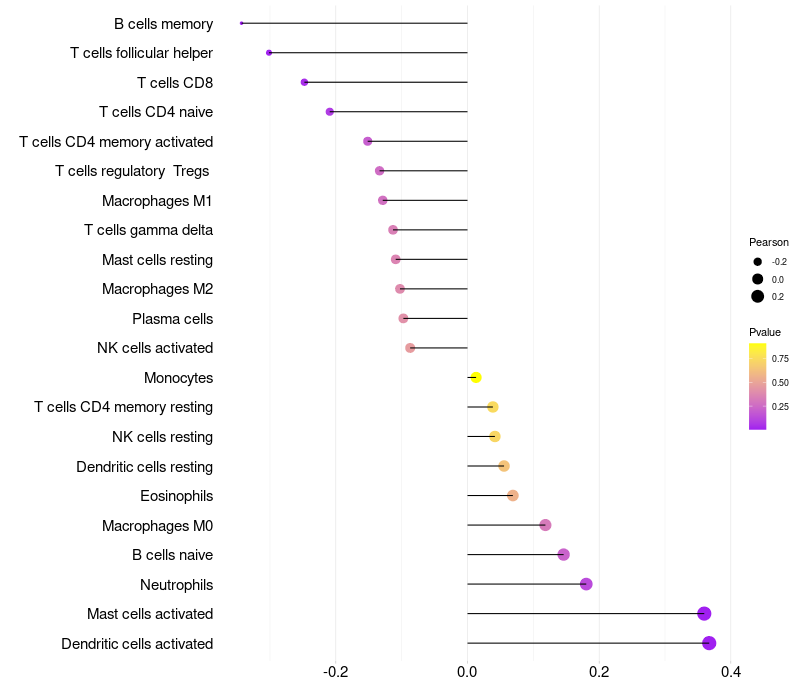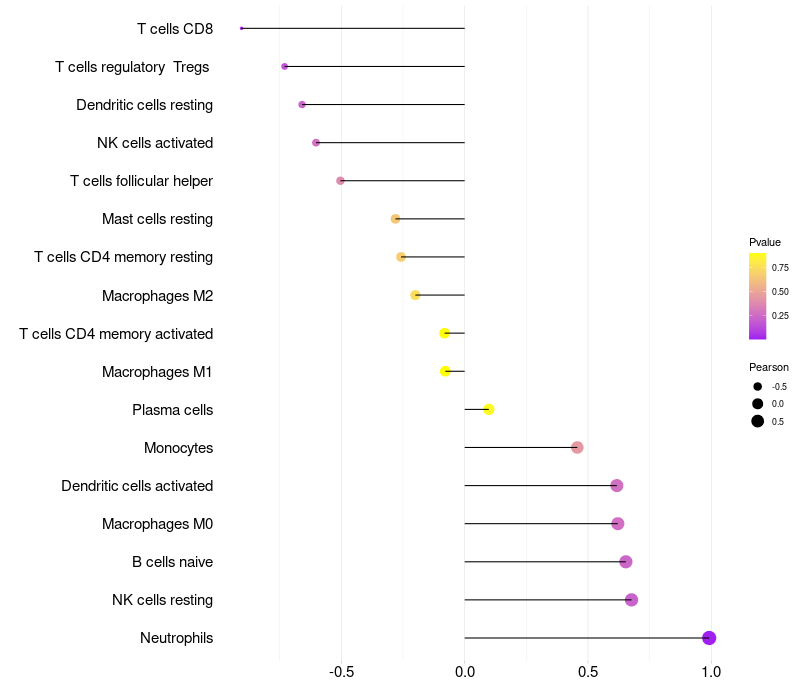 Lollipop of SDC1 expression and immune infiltrating cell level correlation result in HPV+ samples