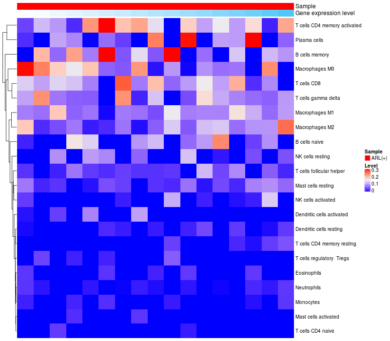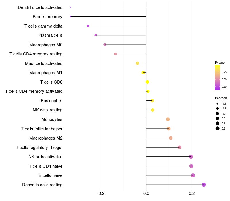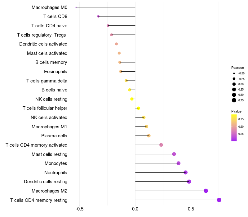 Relationship between gene expression and immune infiltrating cell level