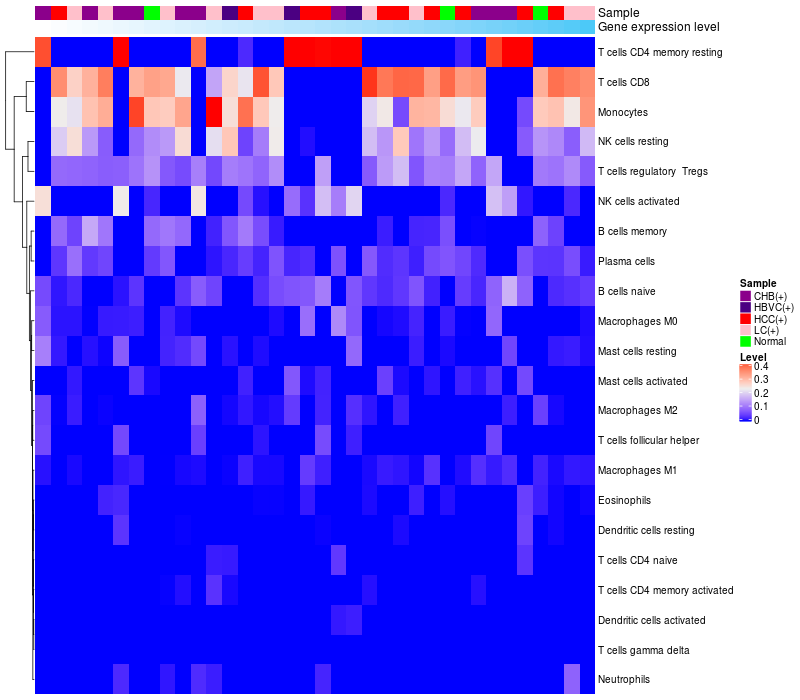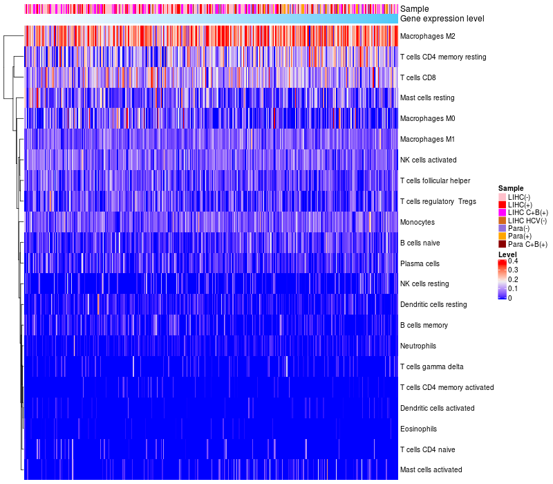 Liver hepatocellular carcinoma HCV (HBV+)(86), Liver hepatocellular carcinoma HCV (HBV-)(19), Liver hepatocellular carcinoma (HBV+)(209), Liver hepatocellular carcinoma (HBV+)(60), Paracancerous HCV (HBV+)(4), Paracancerous (HBV-)(28), Paracancerous (HBV+)(18) |