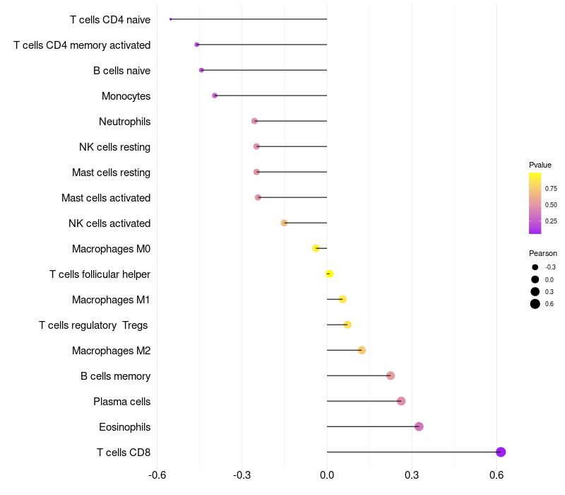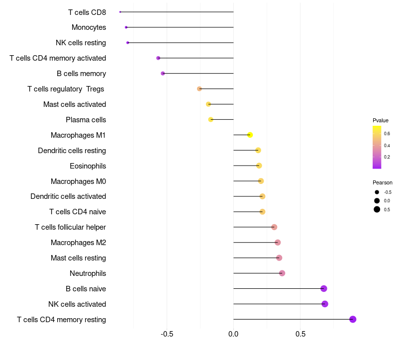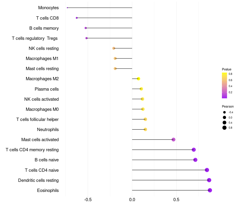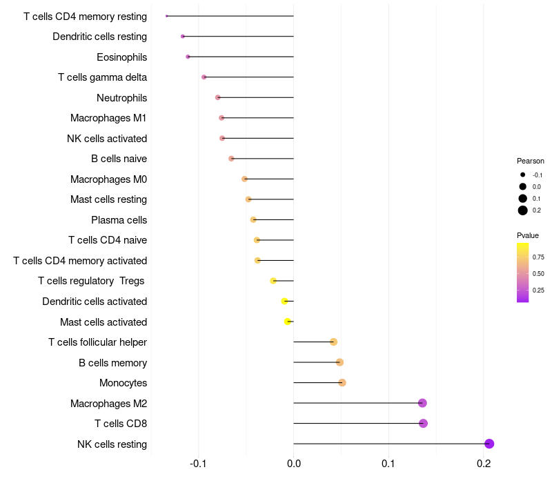 Lollipop of SDSL expression and immune infiltrating cell level correlation result in HBV+ Liver cirrhosis samples