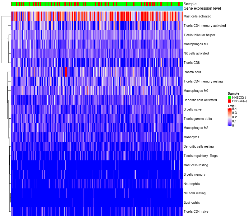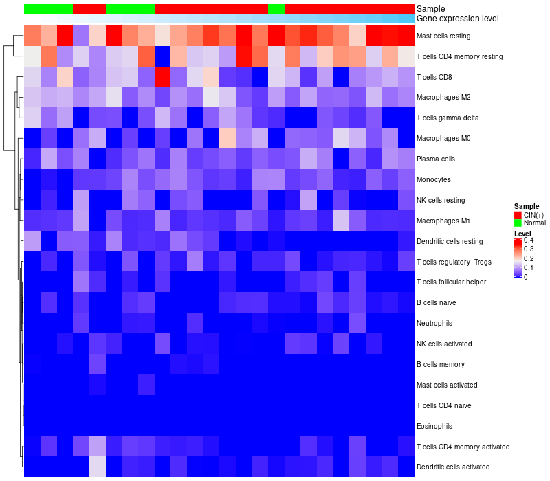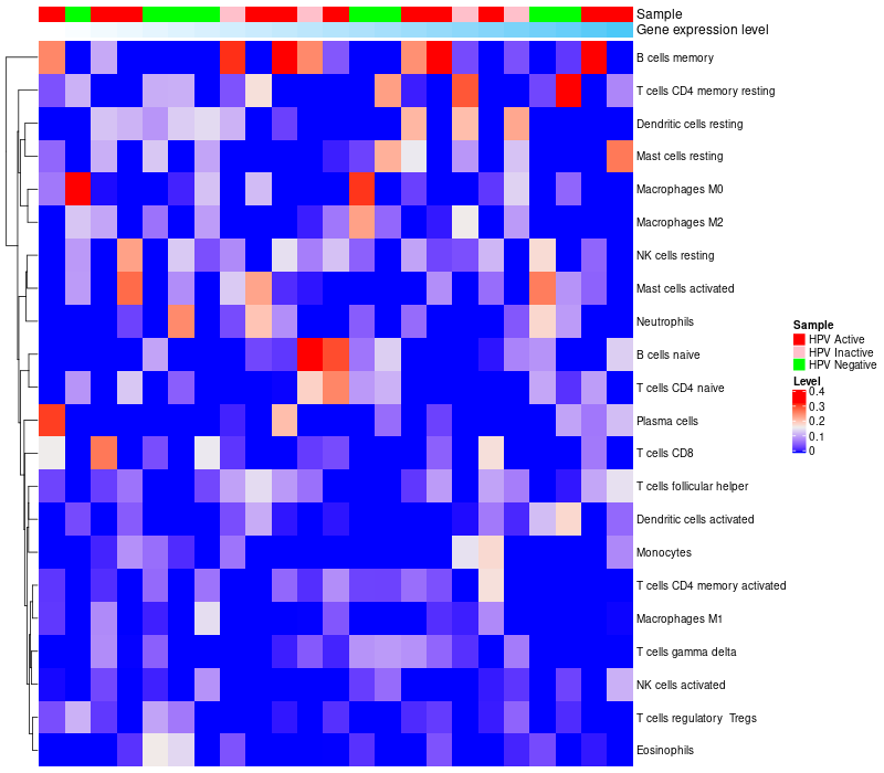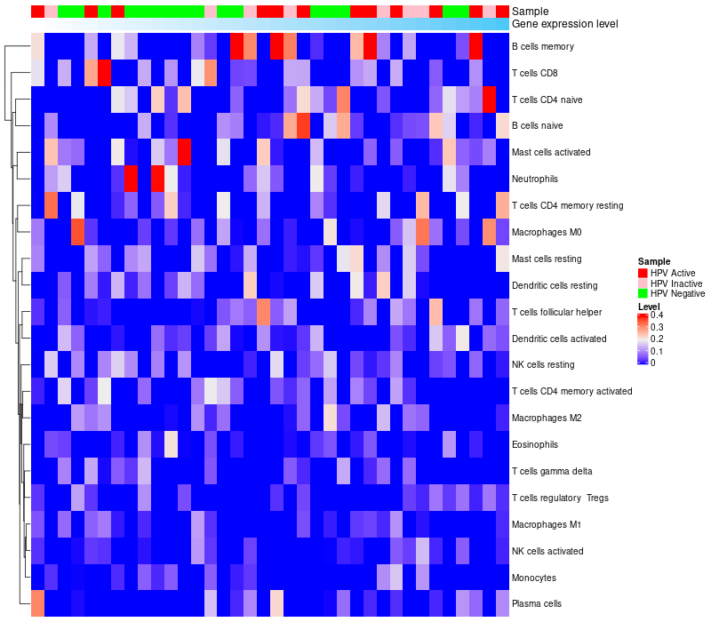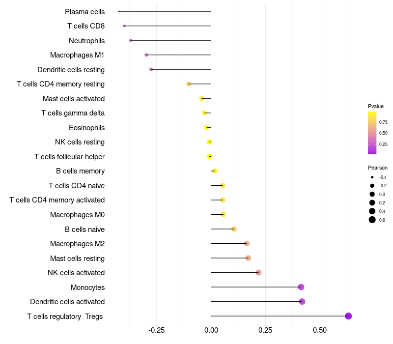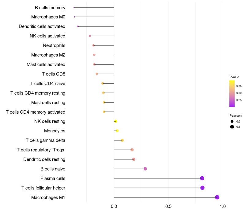 Lollipop of SEC14L4 expression and immune infiltrating cell level correlation result in HPV+ samples