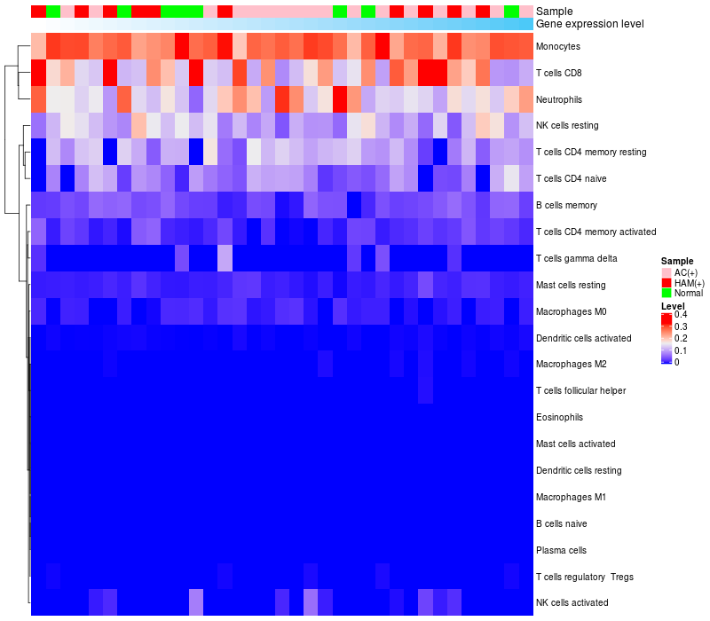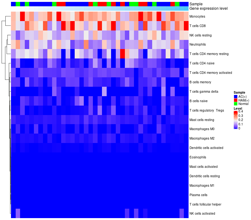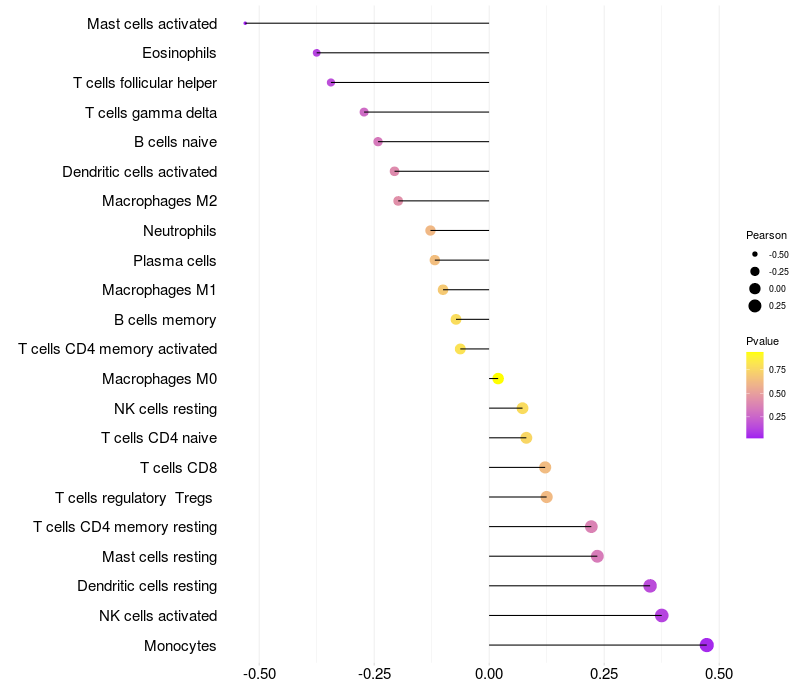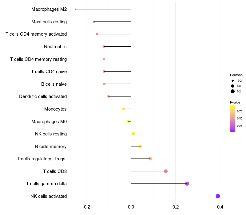 Lollipop of SEMA6C expression and immune infiltrating cell level correlation result in HTLV1+ samples