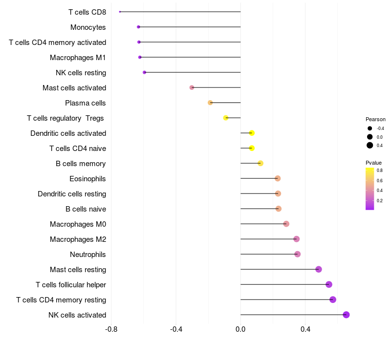 Lollipop of SENP6 expression and immune infiltrating cell level correlation result in HBV+ samples