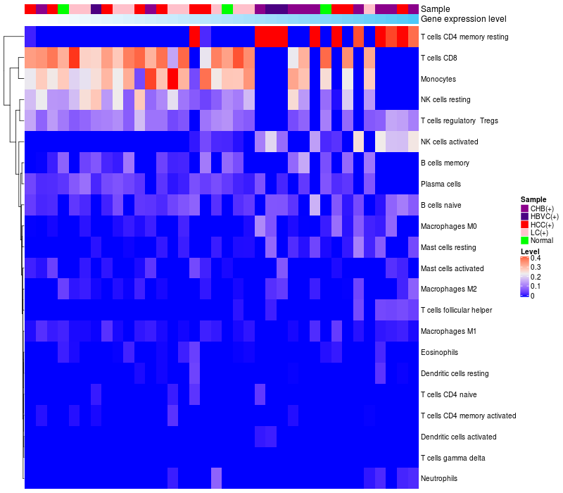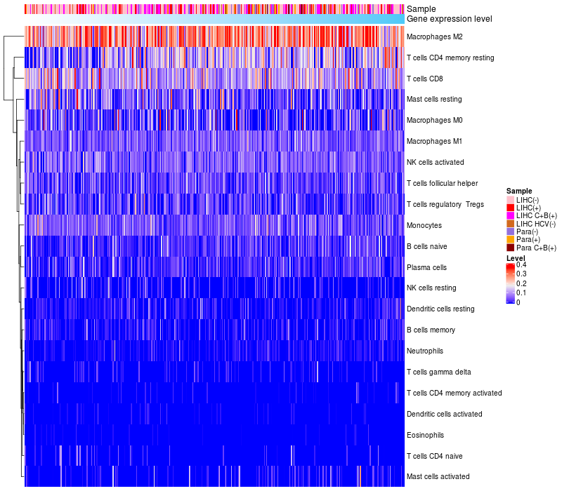 Liver hepatocellular carcinoma HCV (HBV+)(86), Liver hepatocellular carcinoma HCV (HBV-)(19), Liver hepatocellular carcinoma (HBV+)(209), Liver hepatocellular carcinoma (HBV+)(60), Paracancerous HCV (HBV+)(4), Paracancerous (HBV-)(28), Paracancerous (HBV+)(18) |