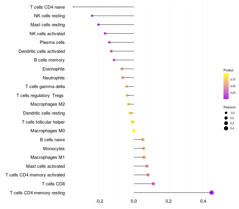 Lollipop of SENP6 expression and immune infiltrating cell level correlation result in HBV+ Chronic HBV (CHB) infection samples