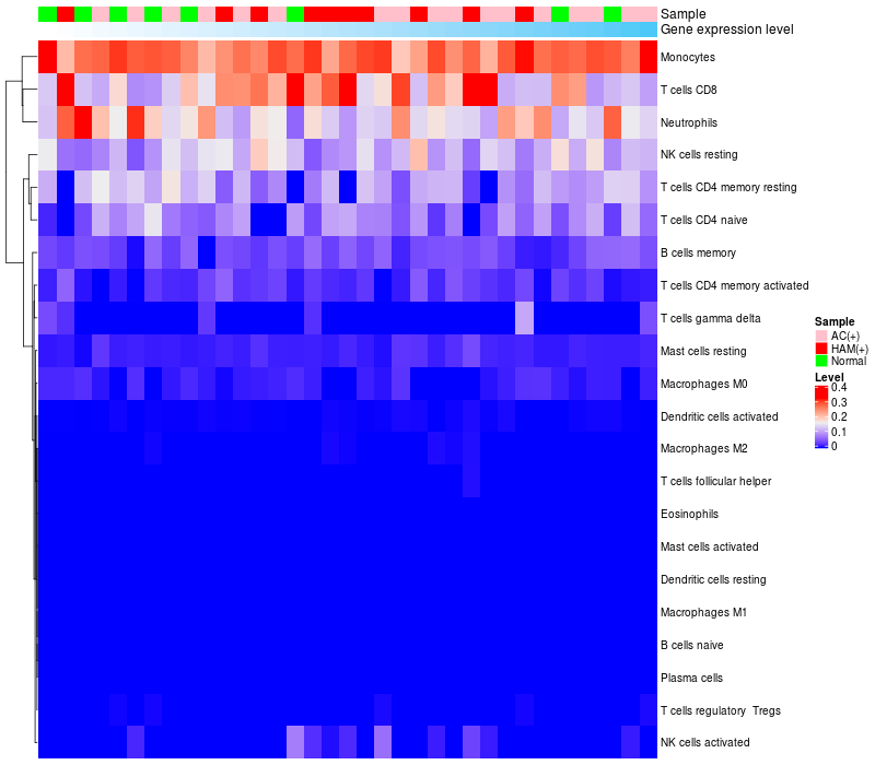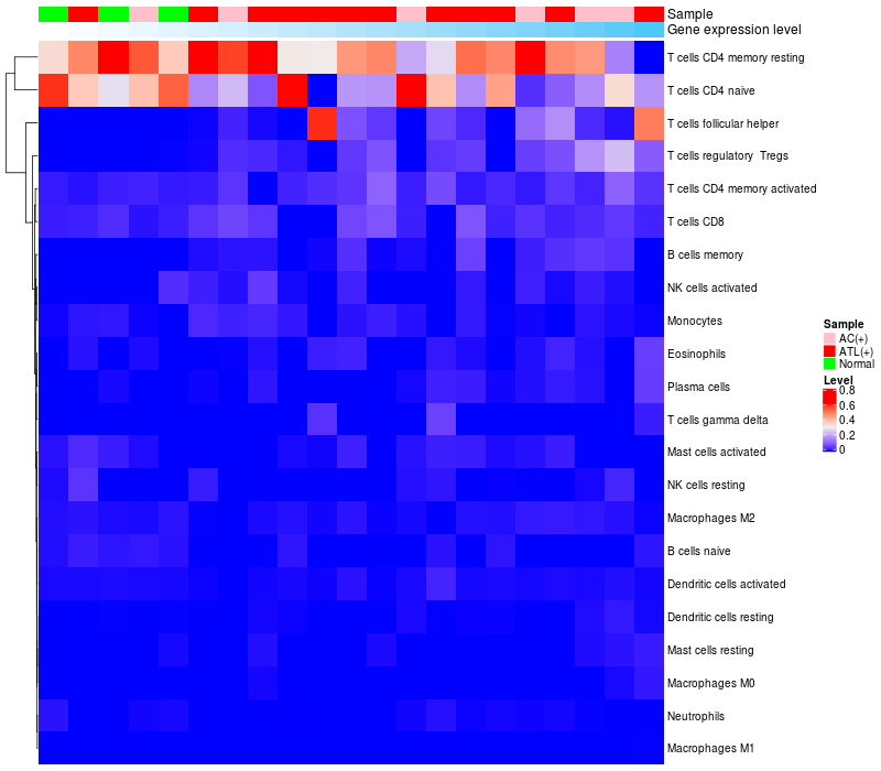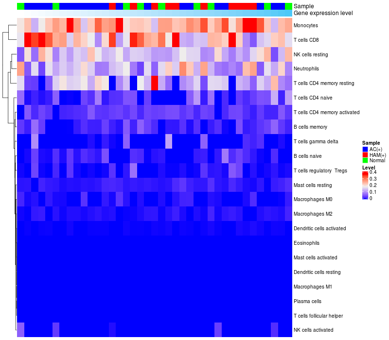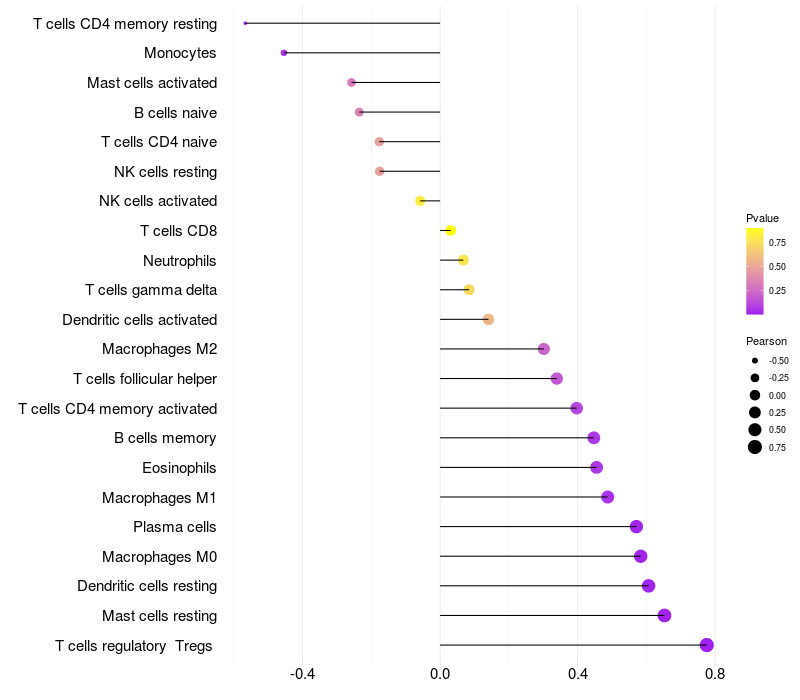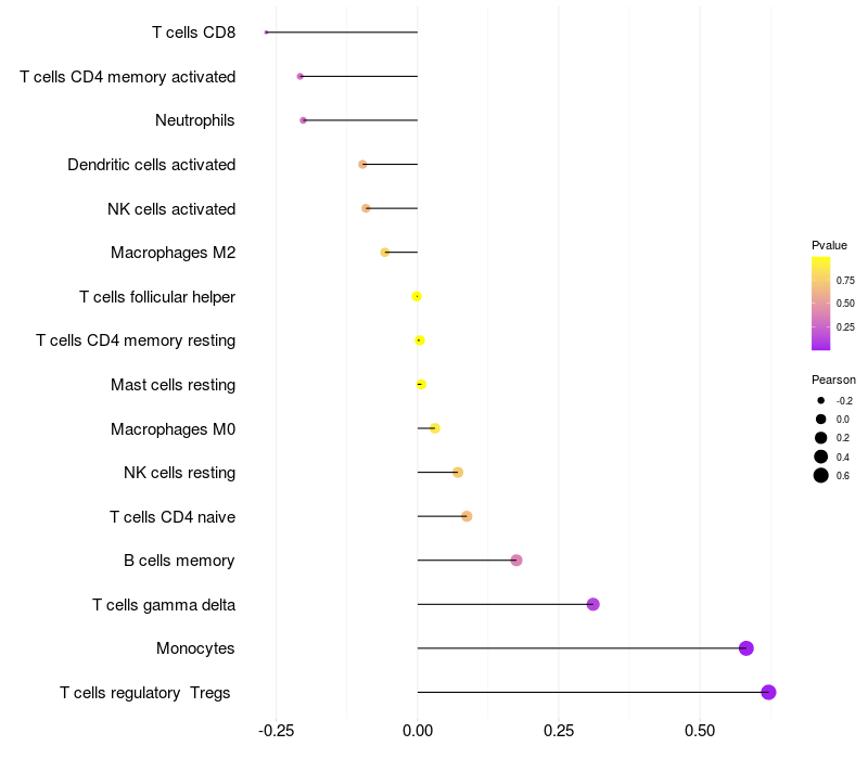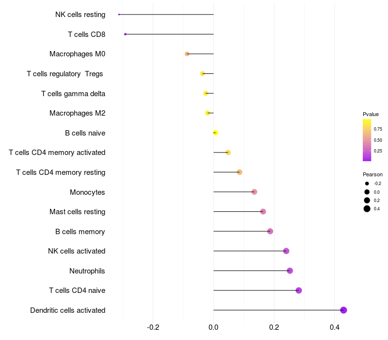 Lollipop of SERINC2 expression and immune infiltrating cell level correlation result in HTLV1+ samples