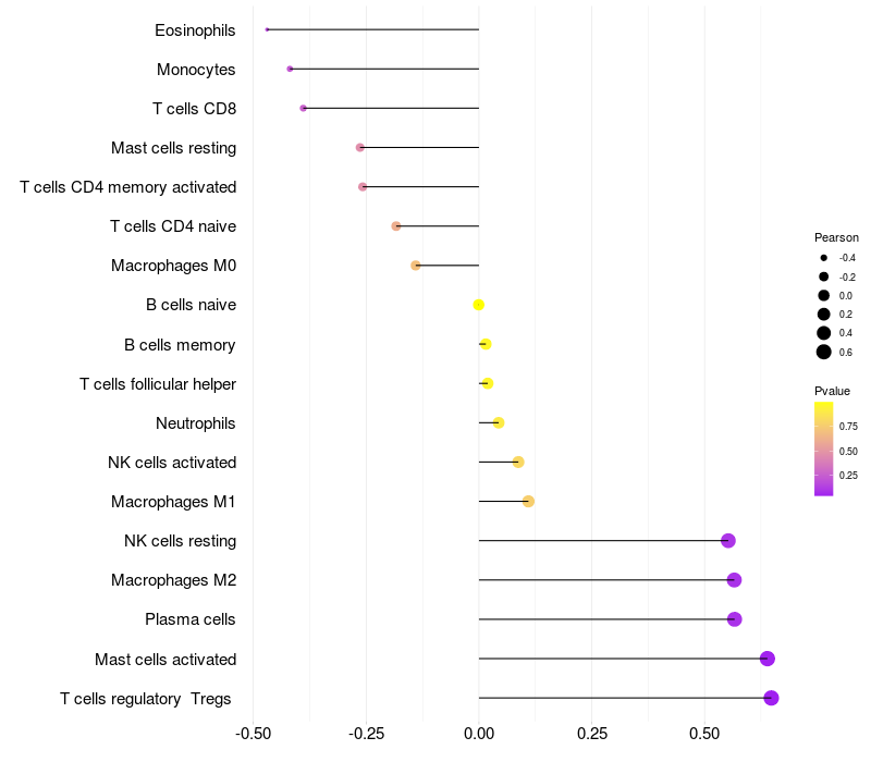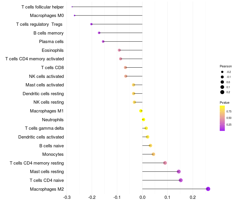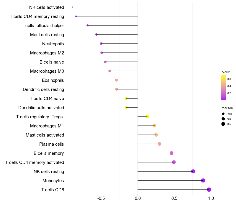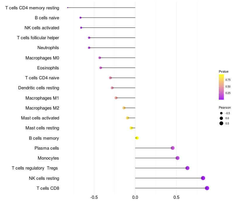 Lollipop of SERINC5 expression and immune infiltrating cell level correlation result in HBV+ Liver cirrhosis samples