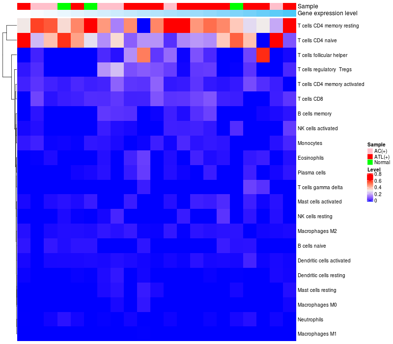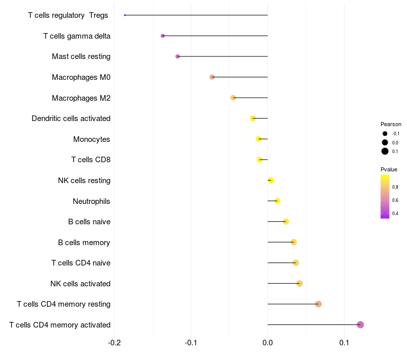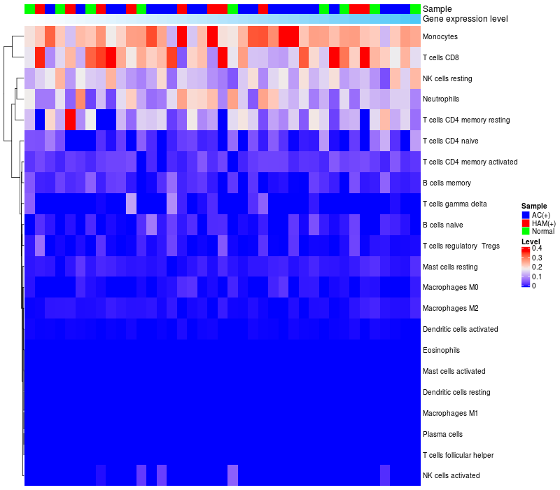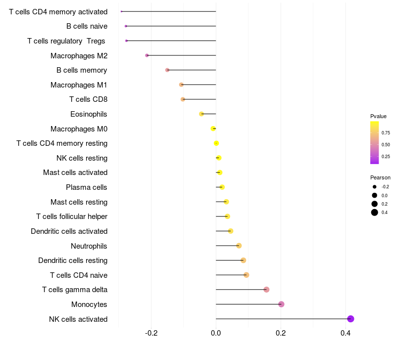 Relationship between gene expression and immune infiltrating cell level