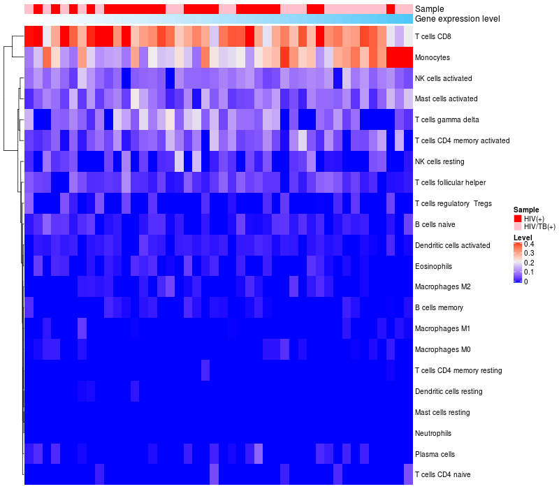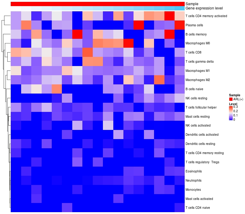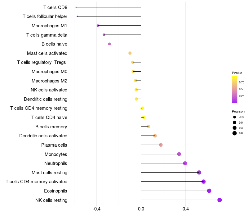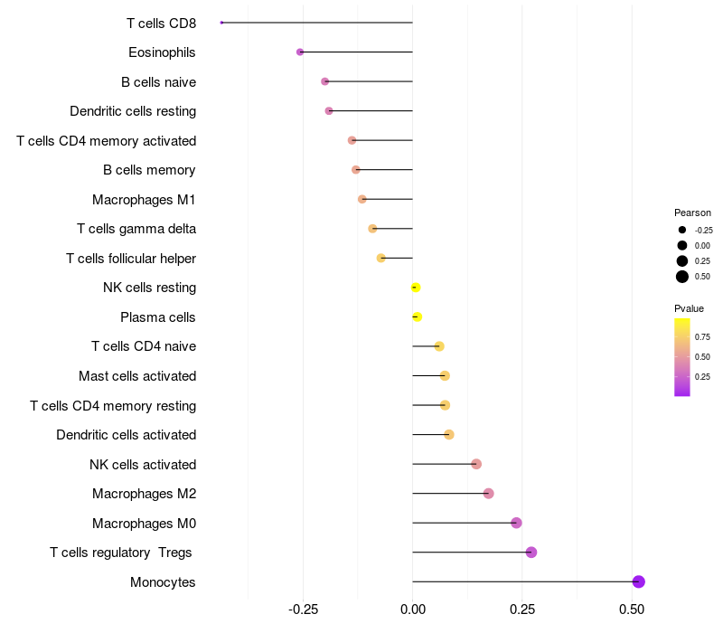 Relationship between gene expression and immune infiltrating cell level