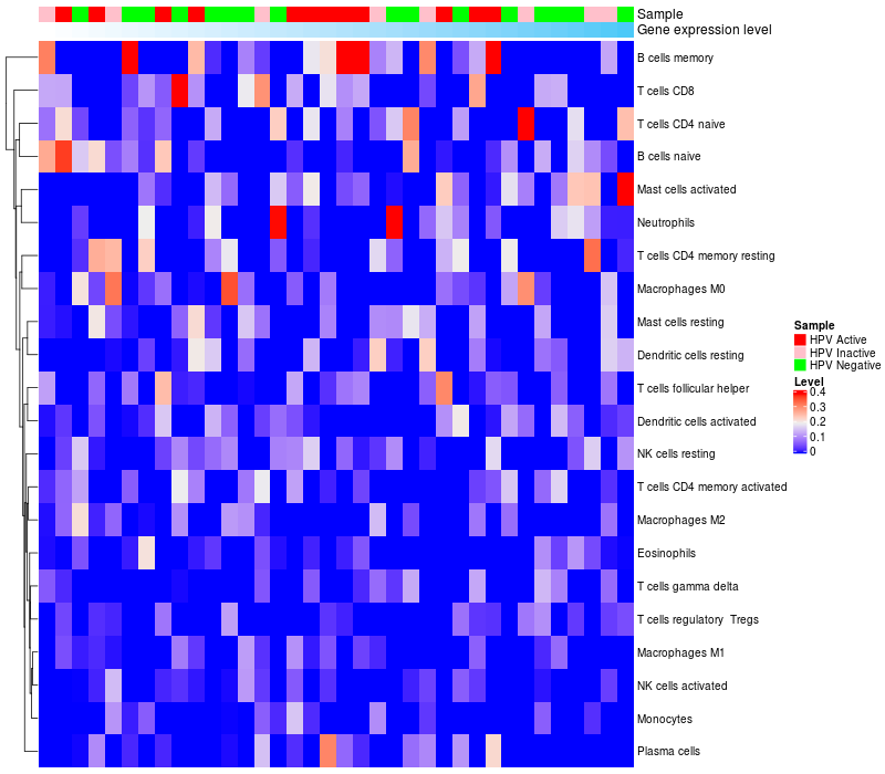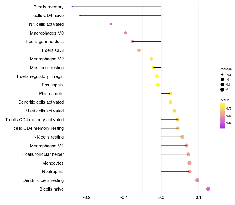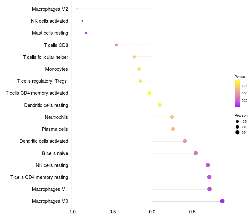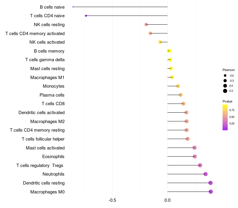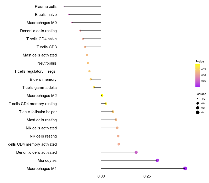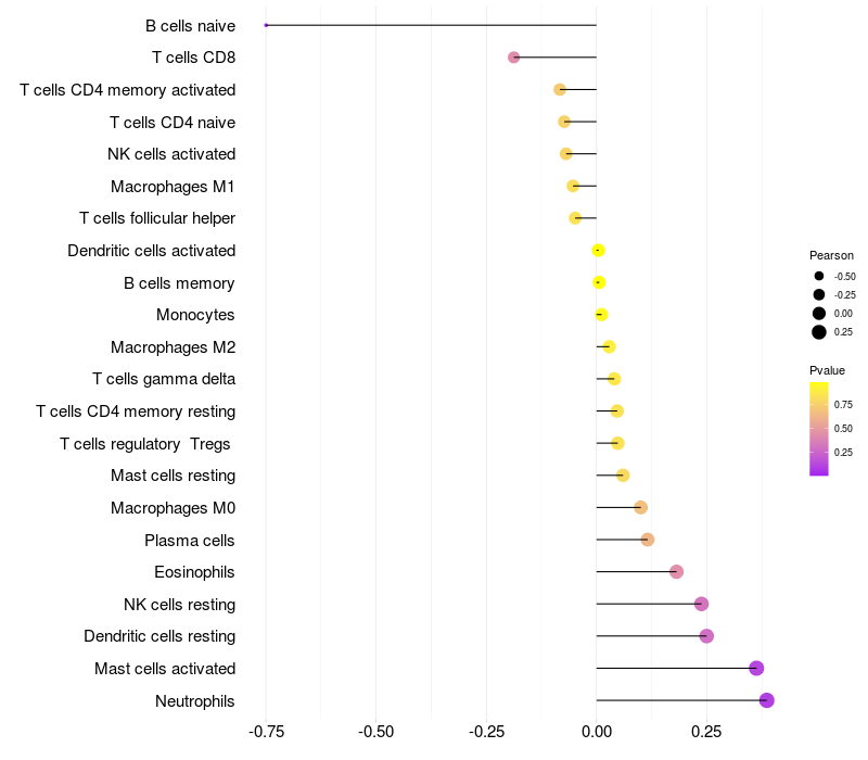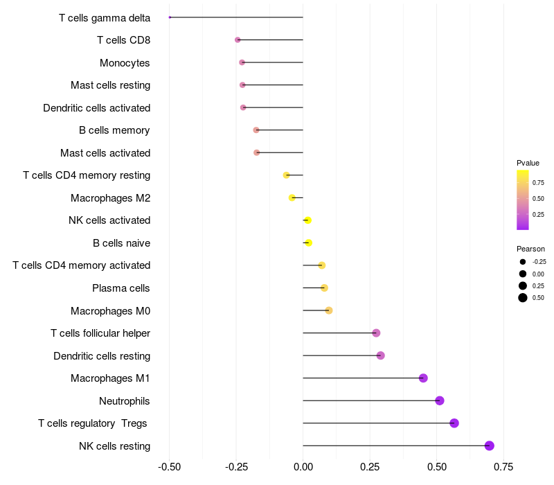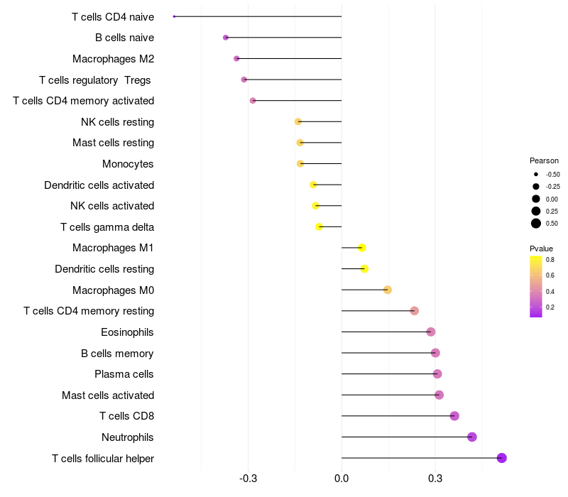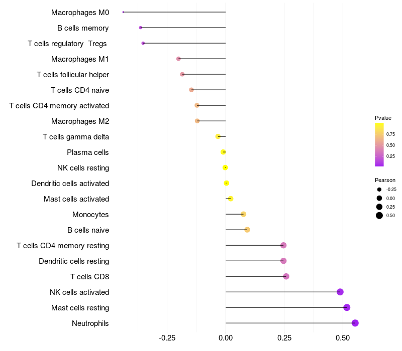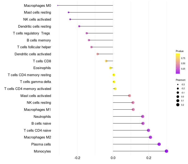 Lollipop of SERPINB4 expression and immune infiltrating cell level correlation result in HPV+ samples