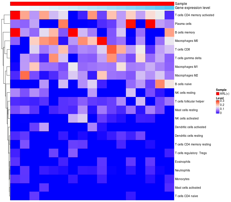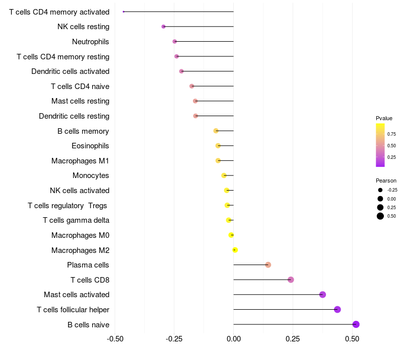 Relationship between gene expression and immune infiltrating cell level