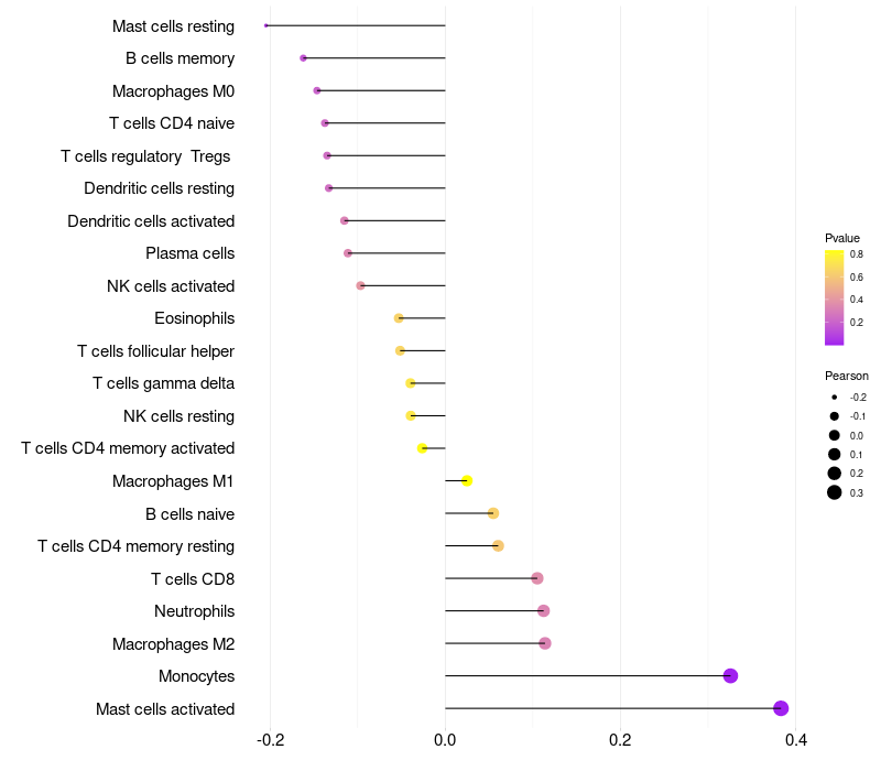 Lollipop of SERPINE1 expression and immune infiltrating cell level correlation result in HBV+ samples