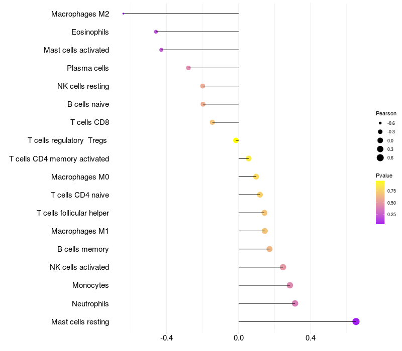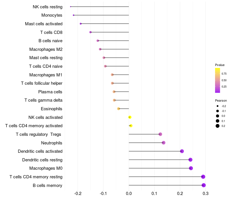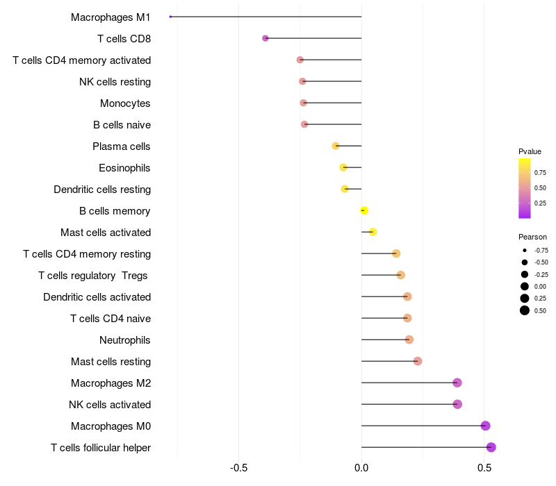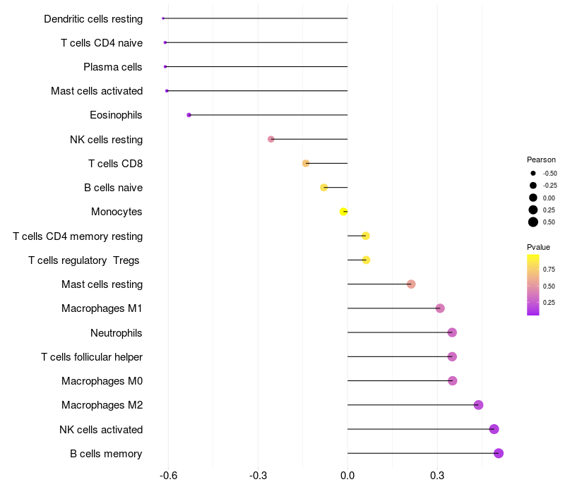 Lollipop of SETD5 expression and immune infiltrating cell level correlation result in HBV+ Liver cirrhosis samples