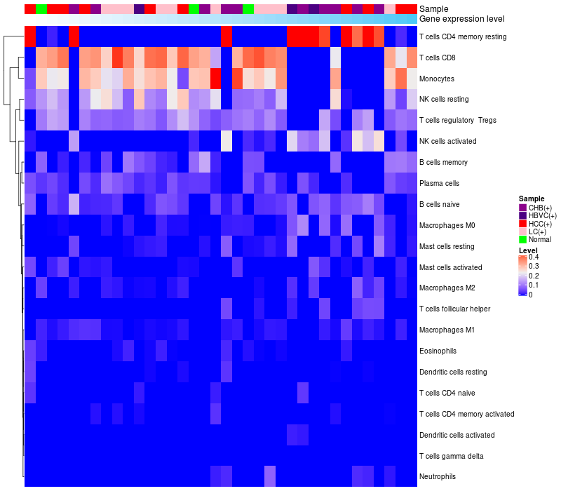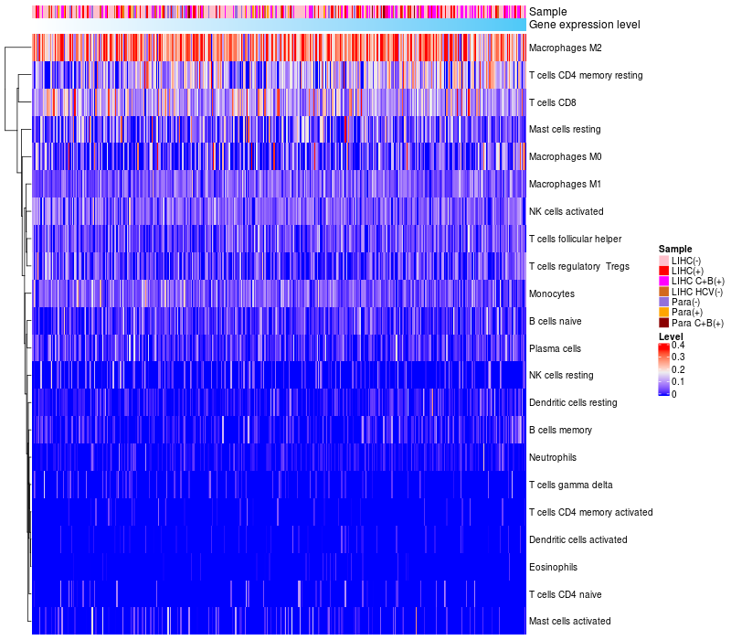 Liver hepatocellular carcinoma HCV (HBV+)(86), Liver hepatocellular carcinoma HCV (HBV-)(19), Liver hepatocellular carcinoma (HBV+)(209), Liver hepatocellular carcinoma (HBV+)(60), Paracancerous HCV (HBV+)(4), Paracancerous (HBV-)(28), Paracancerous (HBV+)(18) |