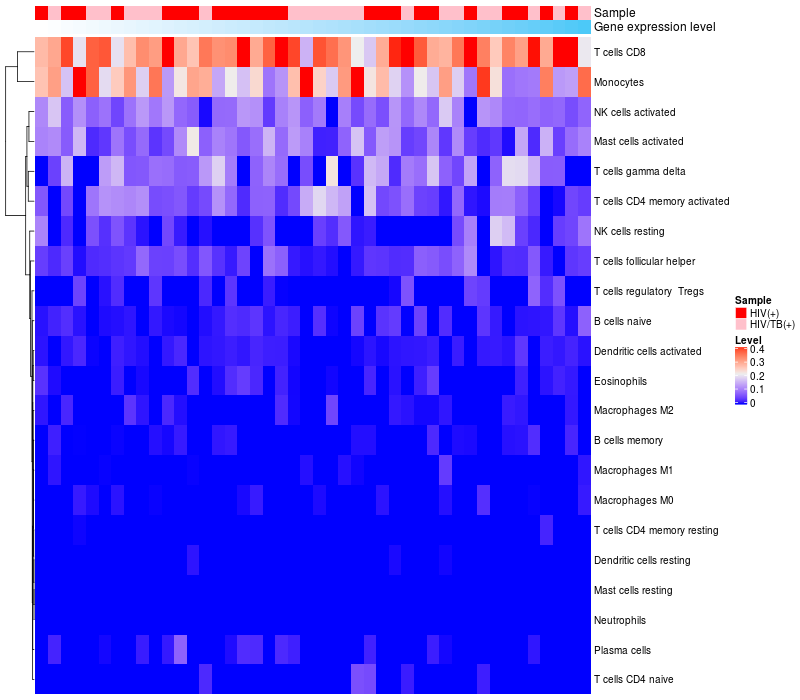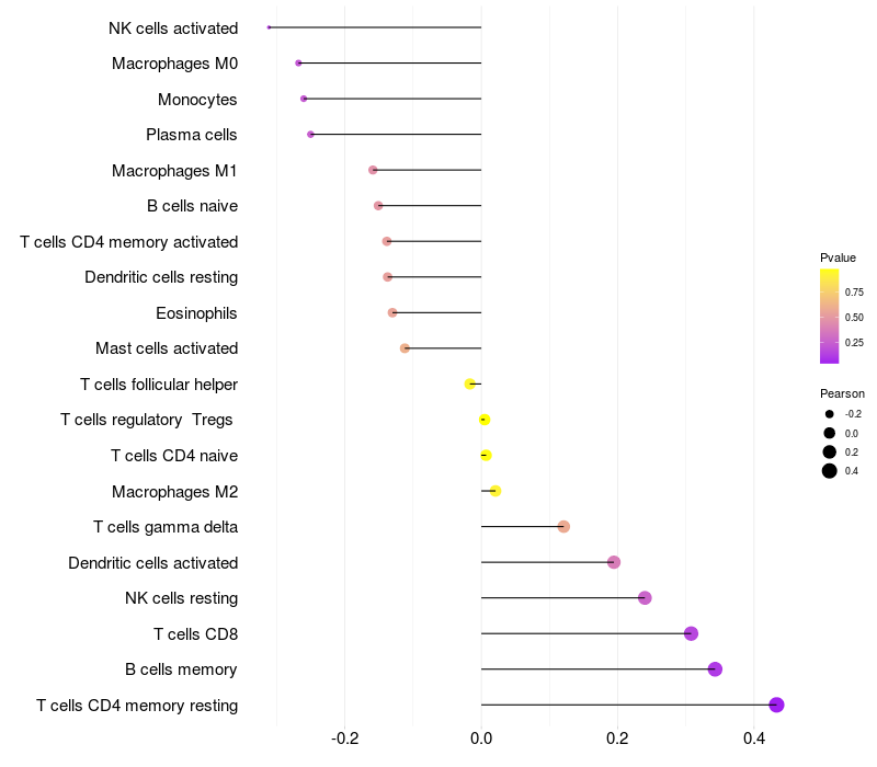 Relationship between gene expression and immune infiltrating cell level