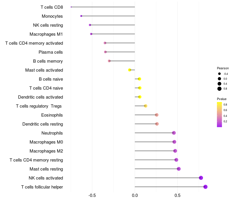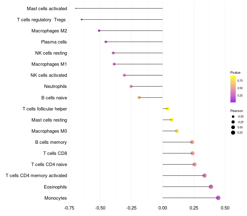 Lollipop of SFPQ expression and immune infiltrating cell level correlation result in HBV+ samples