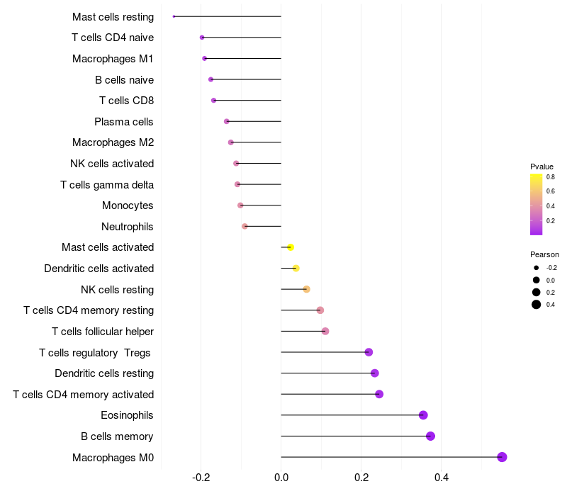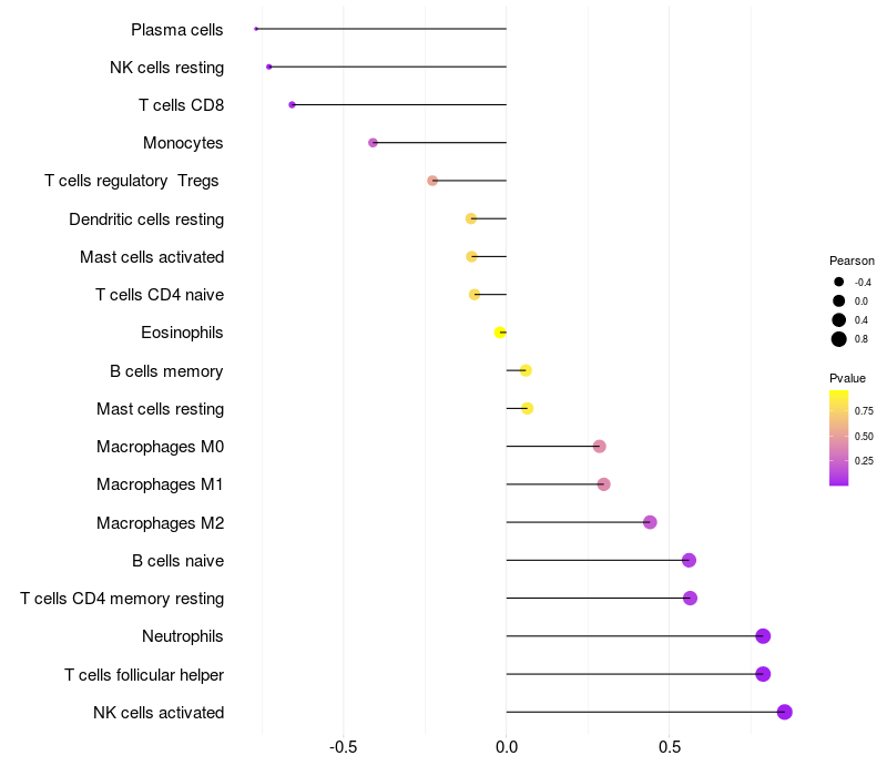Lollipop of SFPQ expression and immune infiltrating cell level correlation result in HBV+ Liver cirrhosis samples