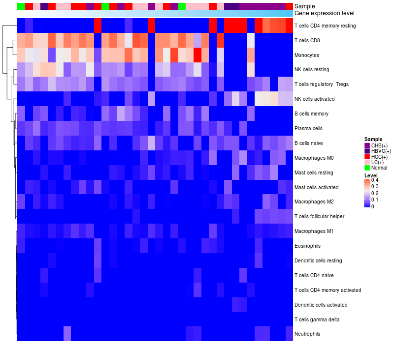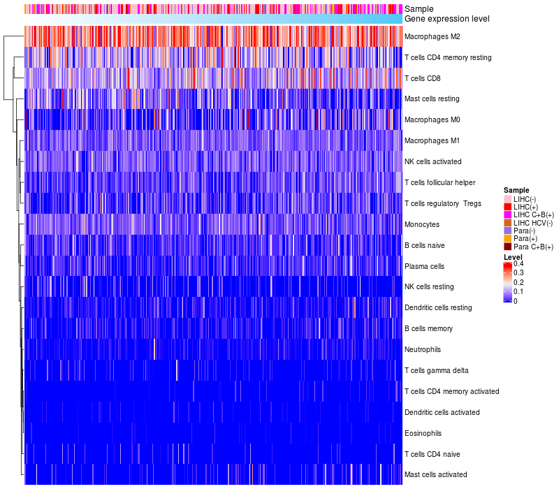 Liver hepatocellular carcinoma HCV (HBV+)(86), Liver hepatocellular carcinoma HCV (HBV-)(19), Liver hepatocellular carcinoma (HBV+)(209), Liver hepatocellular carcinoma (HBV+)(60), Paracancerous HCV (HBV+)(4), Paracancerous (HBV-)(28), Paracancerous (HBV+)(18) |