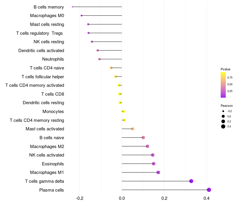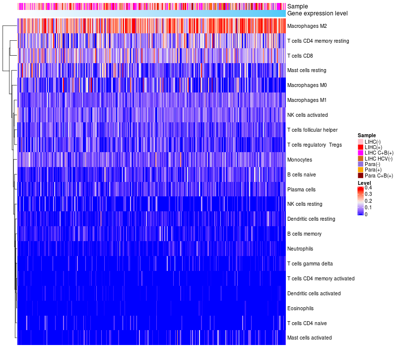 Relationship between gene expression and immune infiltrating cell level