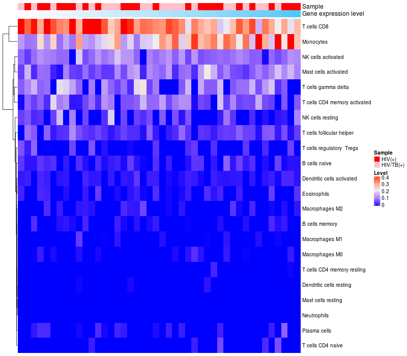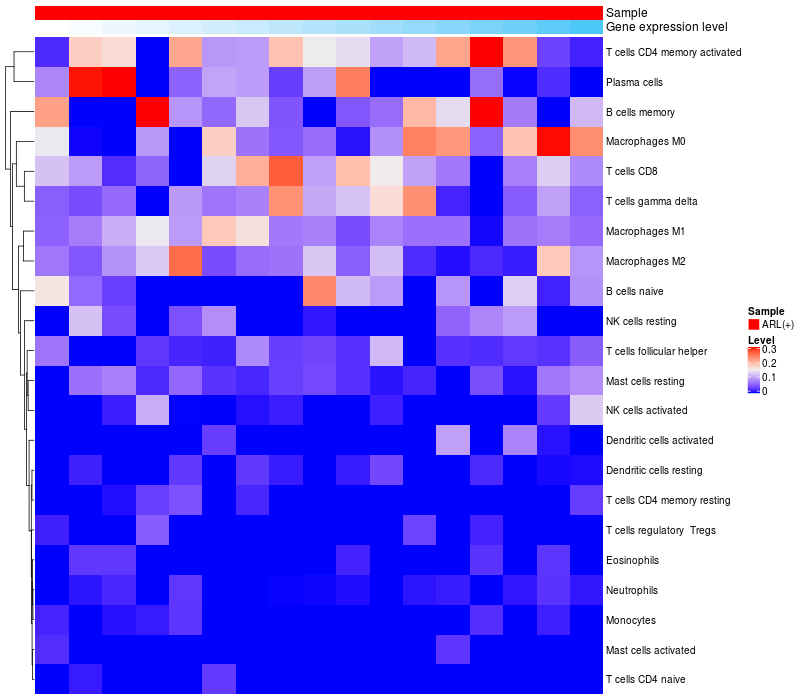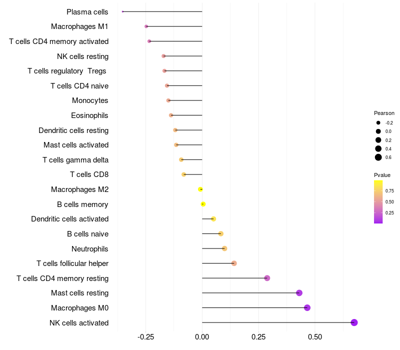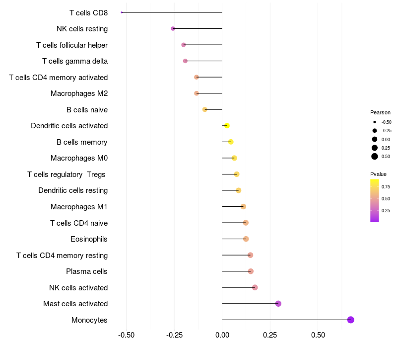 Relationship between gene expression and immune infiltrating cell level