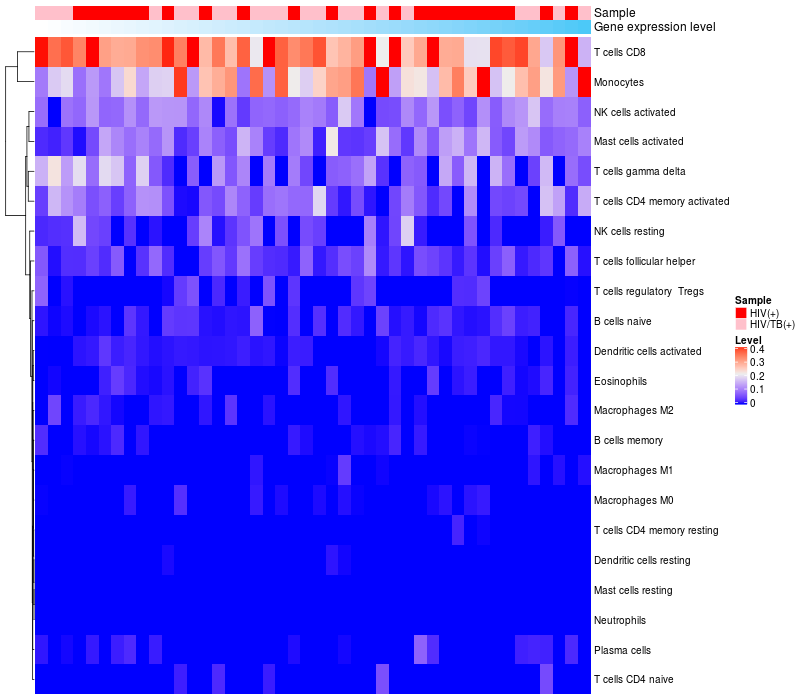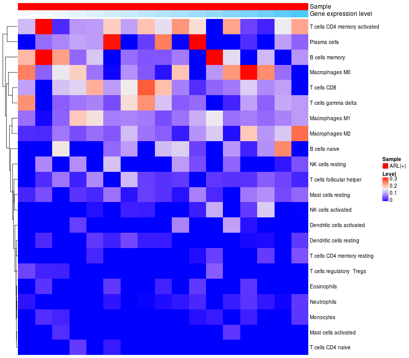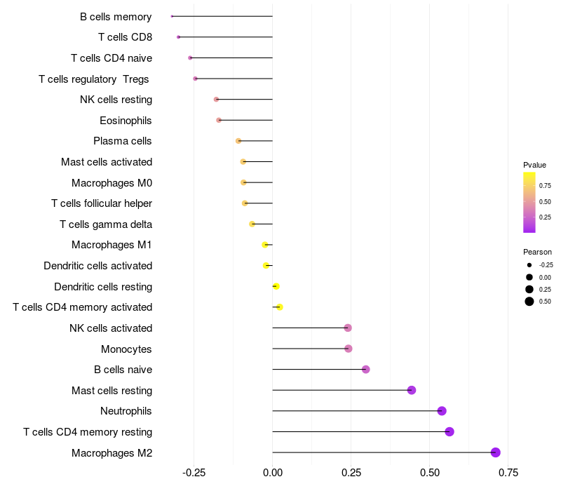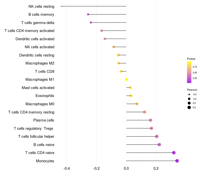 Relationship between gene expression and immune infiltrating cell level
