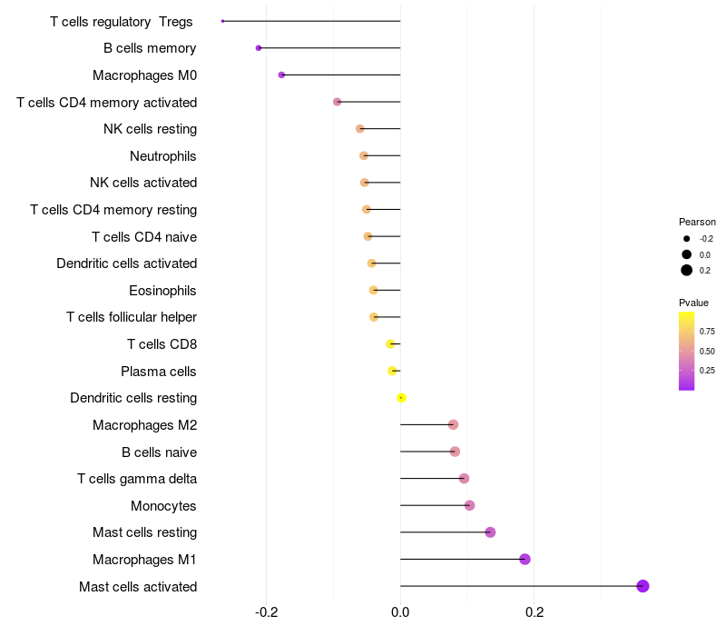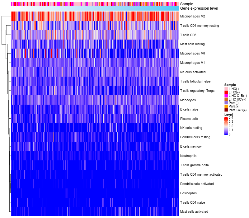 Relationship between gene expression and immune infiltrating cell level