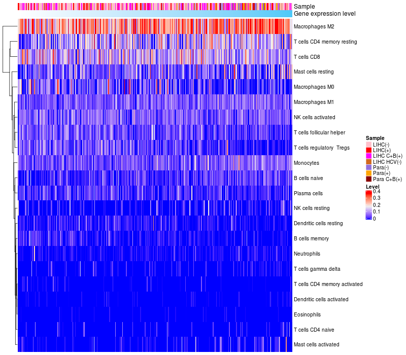 Liver hepatocellular carcinoma HCV (HBV+)(86), Liver hepatocellular carcinoma HCV (HBV-)(19), Liver hepatocellular carcinoma (HBV+)(209), Liver hepatocellular carcinoma (HBV+)(60), Paracancerous HCV (HBV+)(4), Paracancerous (HBV-)(28), Paracancerous (HBV+)(18) |