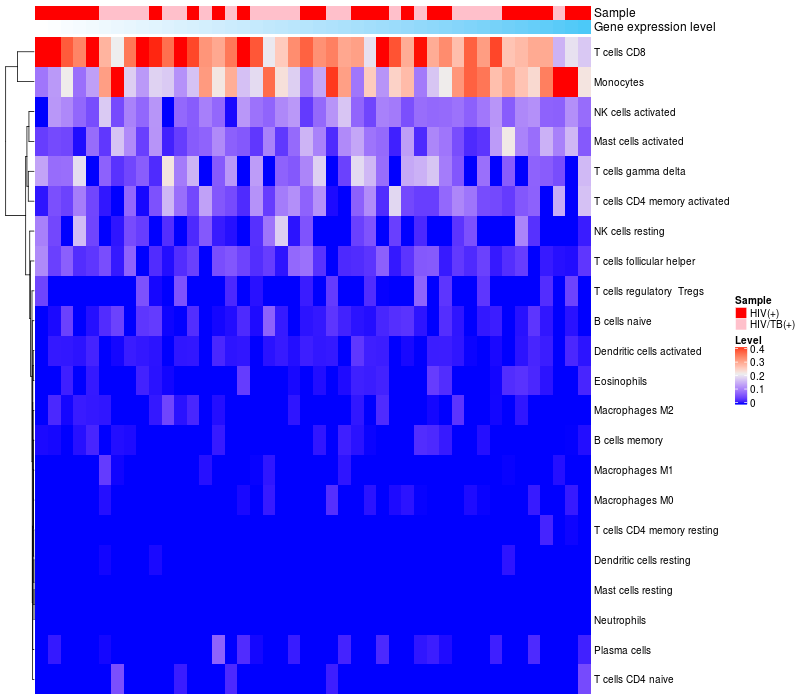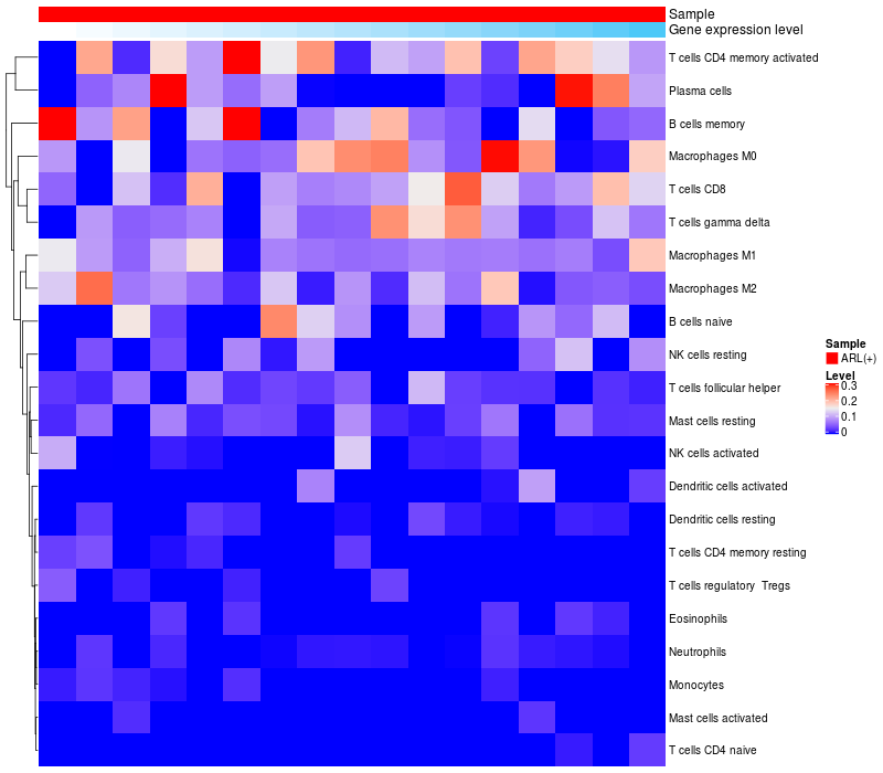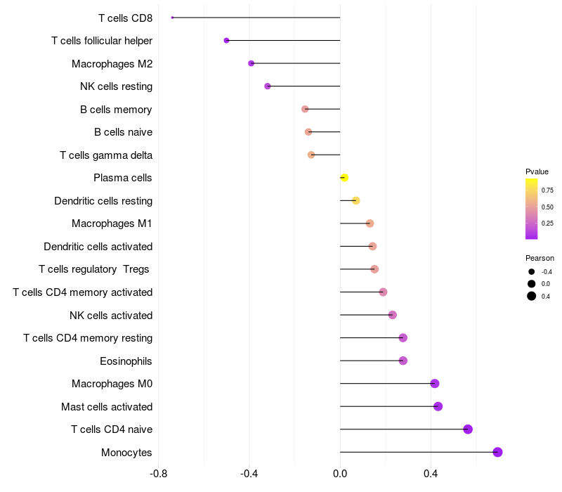 Relationship between gene expression and immune infiltrating cell level