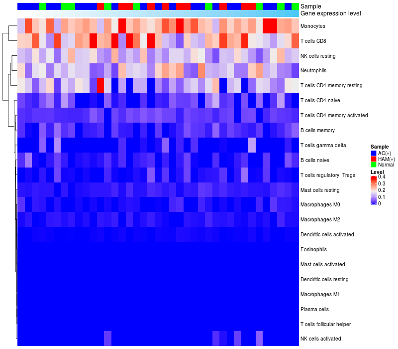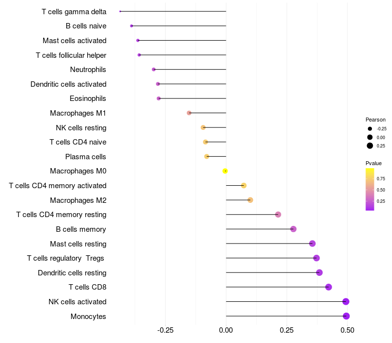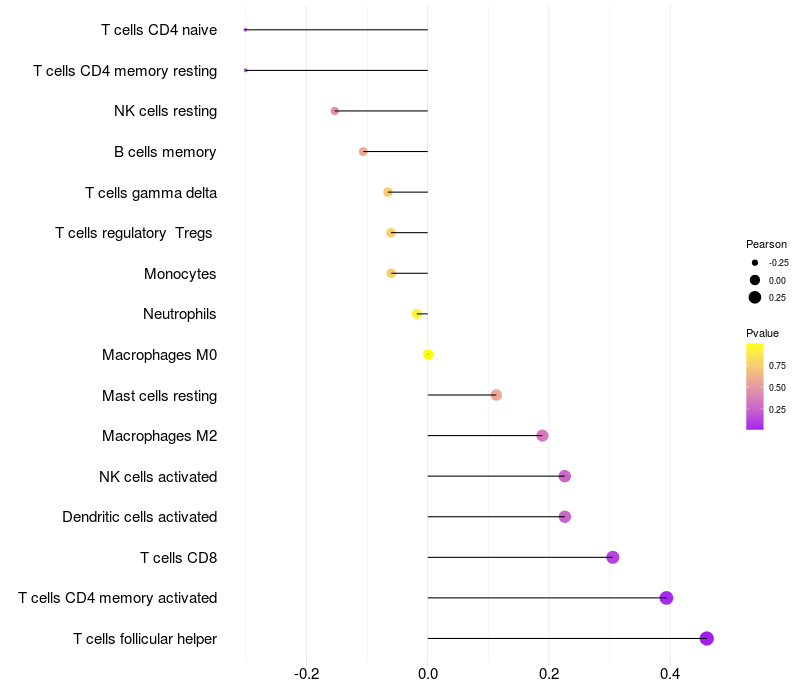 Lollipop of SHANK1 expression and immune infiltrating cell level correlation result in HTLV1+ samples
